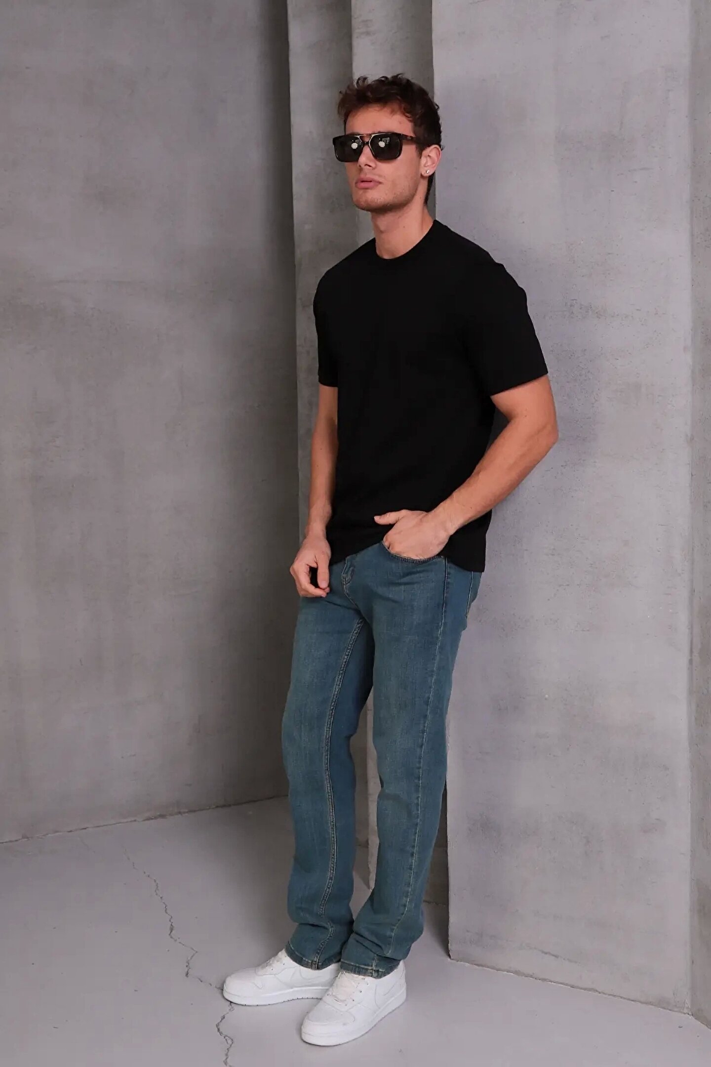 Erkek Relax Fit Bisiklet Yaka %100 Pamuk Rahat Kesim Basic Tişört
