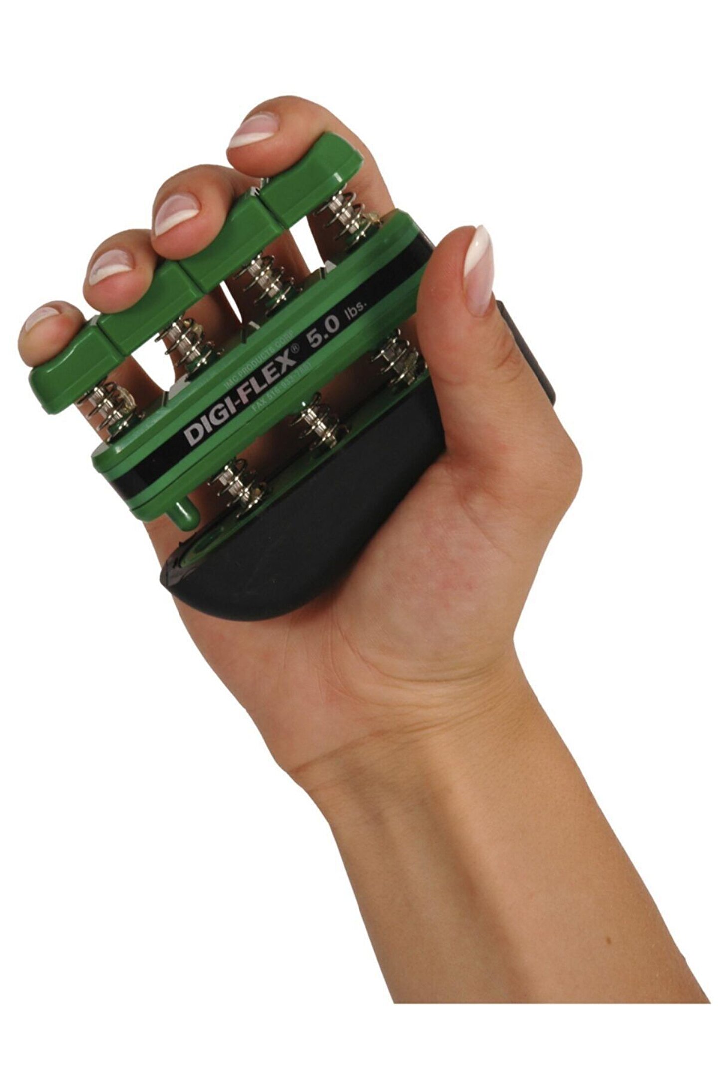 Digi; Flex'in her bir parmak için ayrı ayrı yaylarla kuvvetlendirilmiş butonları sayesinde güçsüz parmaklar yüzünden güçlülerin çalışmasını engellemez; Bu özellik, daha kolay, hızlı ve başarılı rehabilitasyon süreci geçirmenizi sağlar; 5 ayrı direnç/renk ürün mevcuttur; Farklı direnç ölçülerinin olması terapistlerin gelişimi ölçmesini sağlar; Dirençler Sarı / 0; 7kg Kırmızı / 1; 4kg Yeşil / 2; 3kg Mavi / 3; 2kg Siyah / 4; 1kg;;