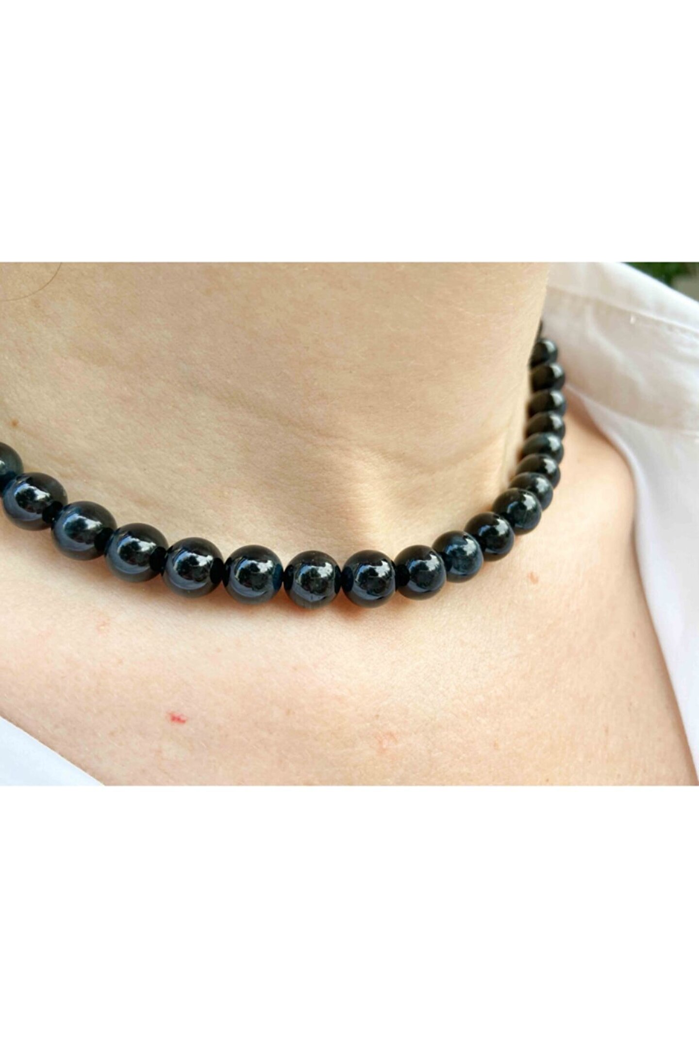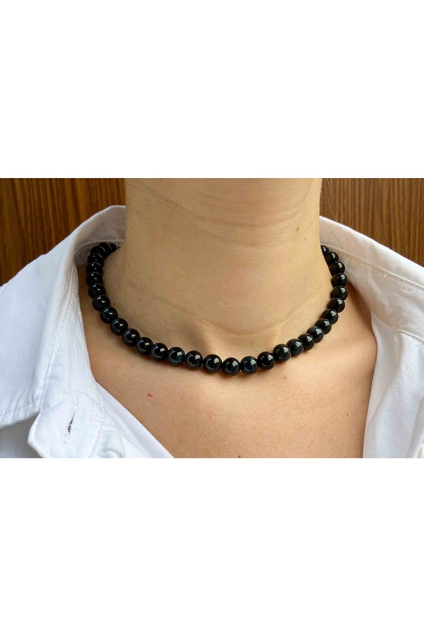 Doğal turmalin taşı kullanılarak üretilmiş, şıklığı ve zarafeti bir arada sunan kolye; 8 mm boyutundaki taşlar, her türlü kıyafetle kolayca uyum sağlayarak günlük kullanım için idealdir; Siyah turmalin taşı, benzersiz desenleri ve renkleriyle dikkat çekerken, doğallığıyla da ön plana çıkar; Bijuteri kolye, hem gündelik hem de özel günlerde tercih edilebilecek çok yönlü bir aksesuar seçeneği sunar;