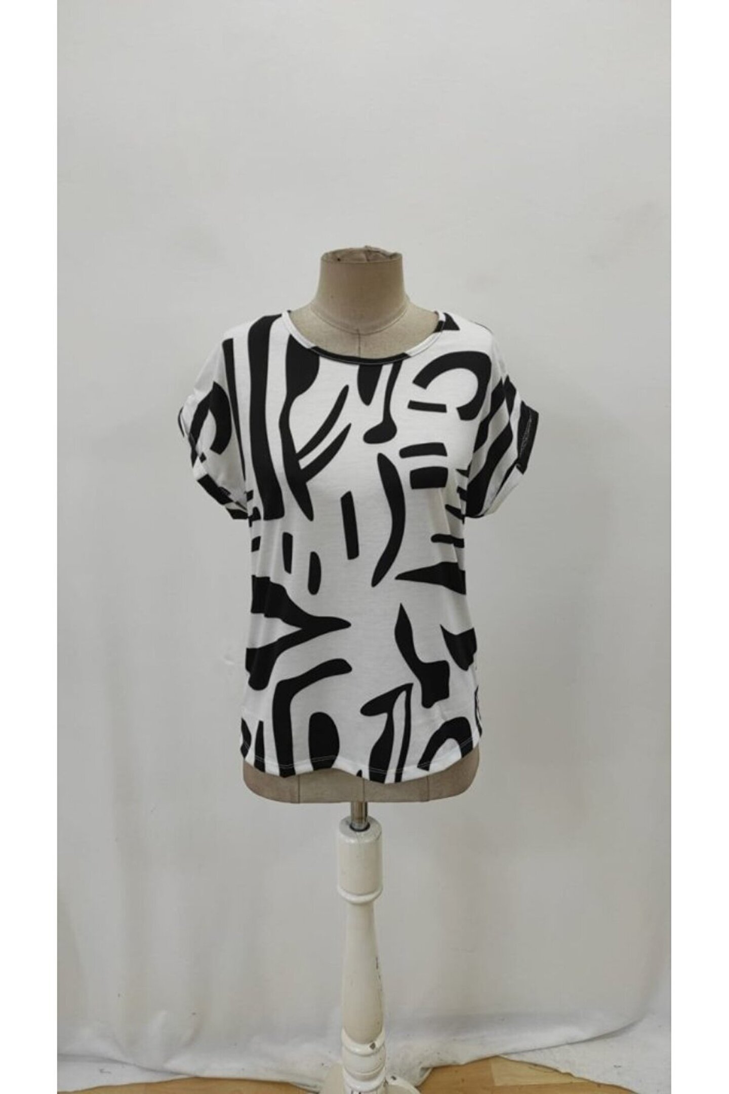 Kadın Kısa Kollu Yuvarlak Yaka Desenli Süprem Bluz