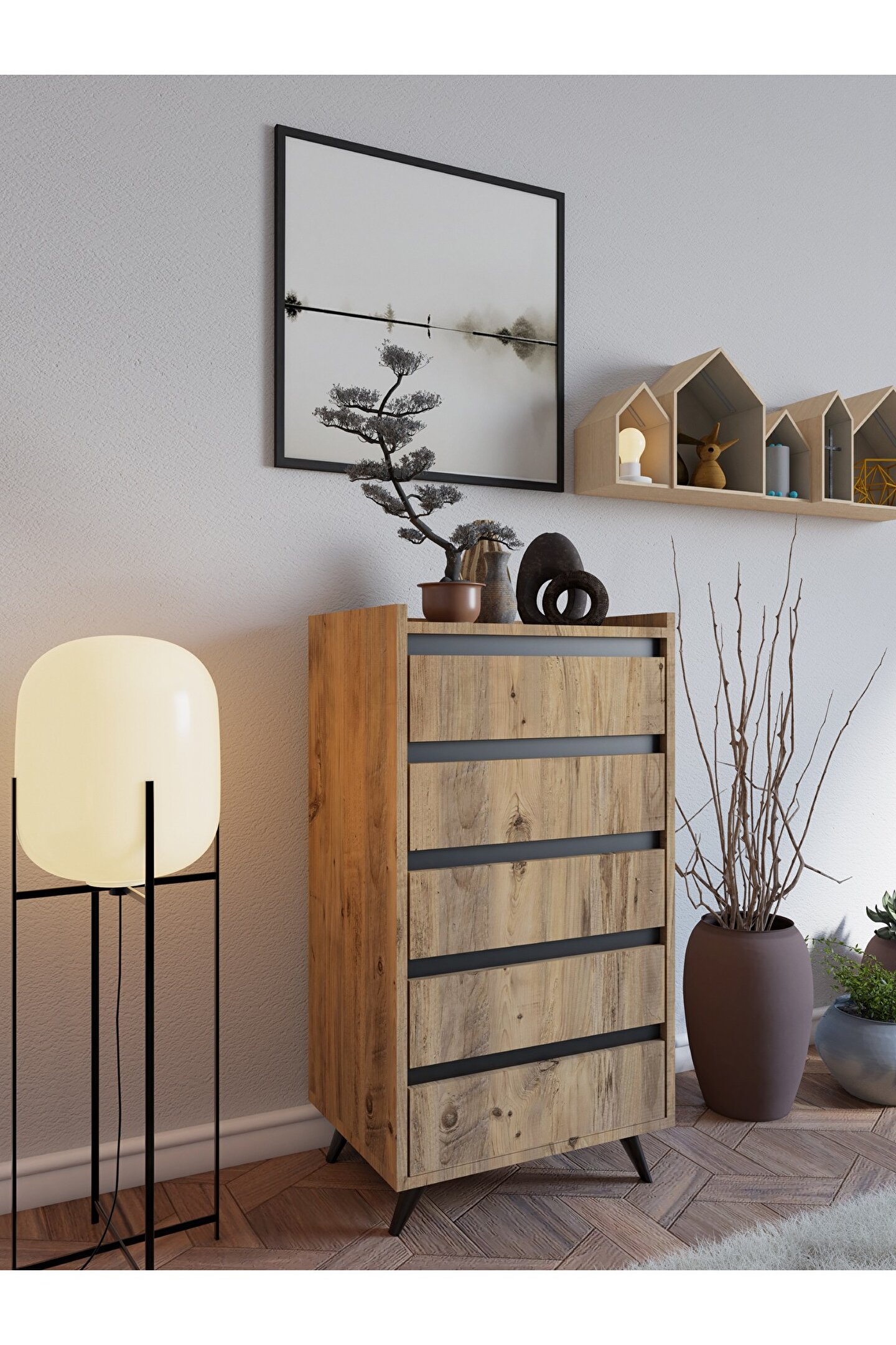 - Suntalam malzemesi sayesinde uzun ömürlü ve dayanıklı kullanım sunar; - Modern tasarımı ile mekanınıza şık bir görünüm katar; - Çekmeceli yapısı, düzenli depolama alanı sağlayarak evinizdeki dağınıklığı azaltır; - Modern tema ve stil anlayışıyla ev dekorasyonunuza çağdaş bir dokunuş ekler;