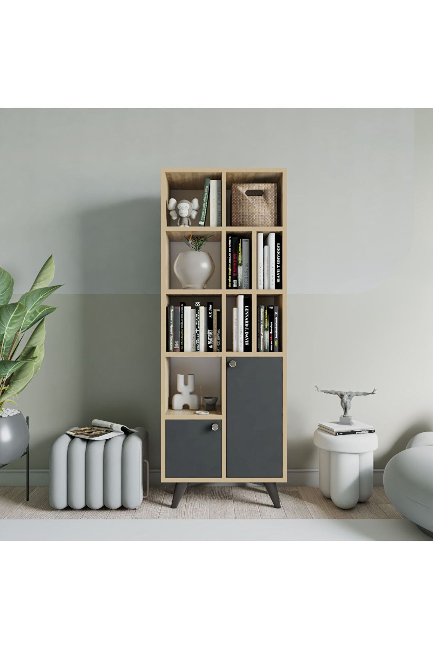MYMOB RA kitaplık antrasit kapak Ürün ölçüleri G60 cm d30 cm y174 cm G:Genişlik d:Derinlik y:Yükseklik Malzemeler Gövde: Royal meşe suntalam Renk Gövde : Royal meşe Kapak : Antrasit Ürün özellikleri Kullanılan tüm malzemeler tse onaylı , e1 kalitesinde olup kanserojen madde içermez ve anti bakteriyeldir.