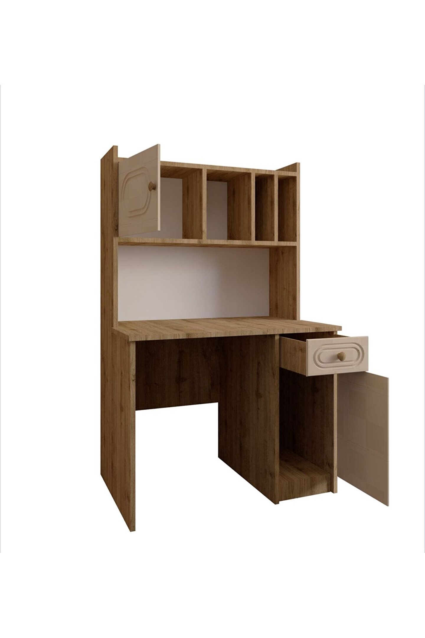 MYMOB SOFİA BOHEM ÇALIŞMA MASASI ÖLÇÜ: G: 95CM Y:154CM D:60CM KAPAKLAR MDF BOYAMA GÖVDE SUNTALAMDIR.; - Kapaklar Bohem model olup oldukça dekoratif bir modeldir.; - Geniş yüzey alanı ile rahat çalışma imkanı sağlar; 95 cm genişliğindeki tasarımı sayesinde geniş dosya ve kitap rafları için idealdir.; - Derinliği 60 cm olan bu masa, kolay erişim ve düzenli bir çalışma ortamı oluştururken ekstra depolama alanından da faydalanmanızı sağlar.;