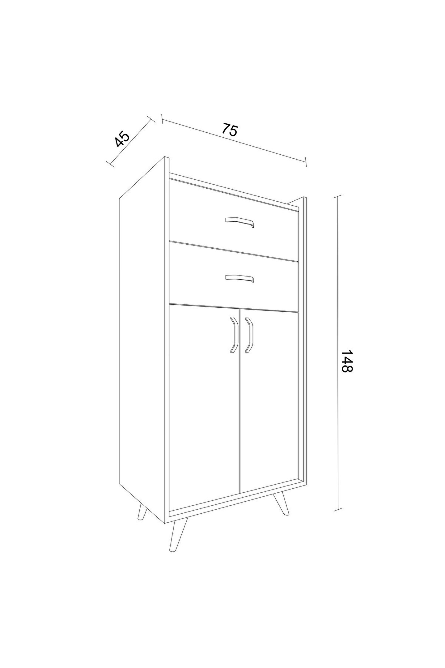 - 45 cm derinlik, 75 cm genişlik ve 148 cm yükseklik ölçüleriyle ideal boyutlarda tasarlanmıştır.