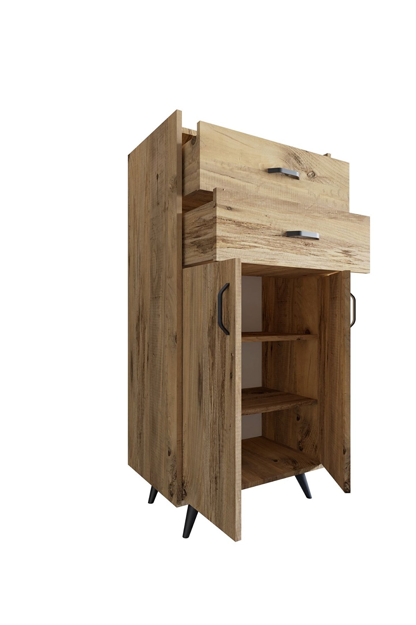 - İki çekmeceli yapısı sayesinde küçük eşyalarınızı düzenli bir şekilde saklamanızı sağlar.