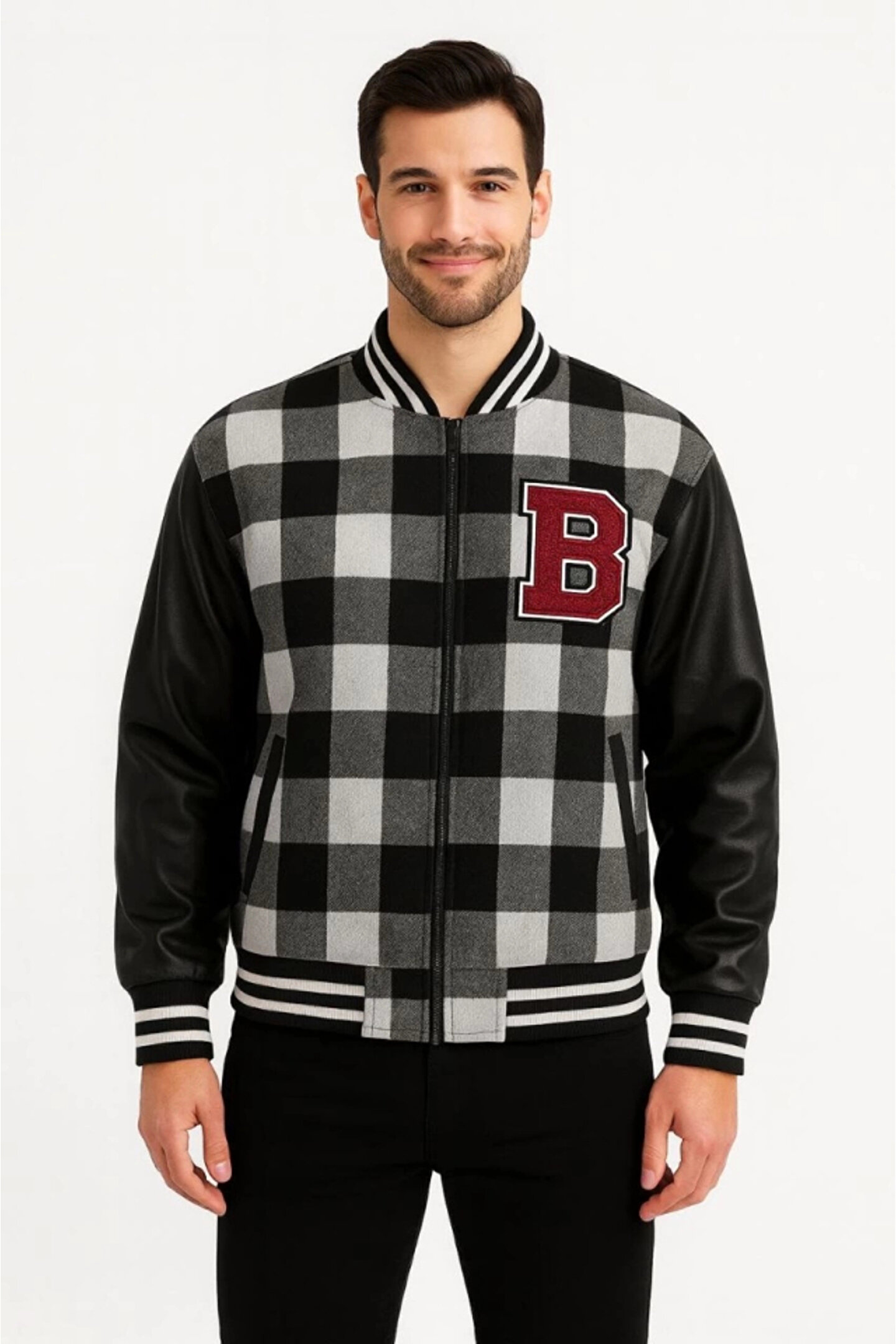 mzpkartan Kolları Suni Deri Içi Astarlı Oduncu Kolej Içi Ceket - Gri