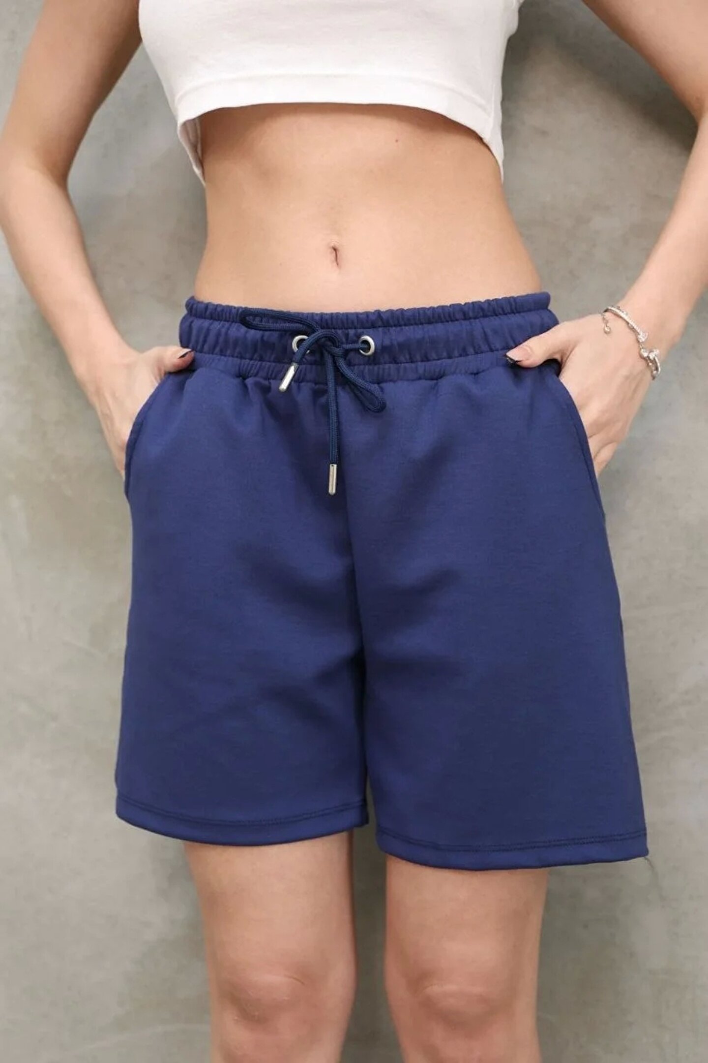 mzpkartan Osy Modal Yumuşak dokulu Kumaş Kadın Kısa Şort - Mavi