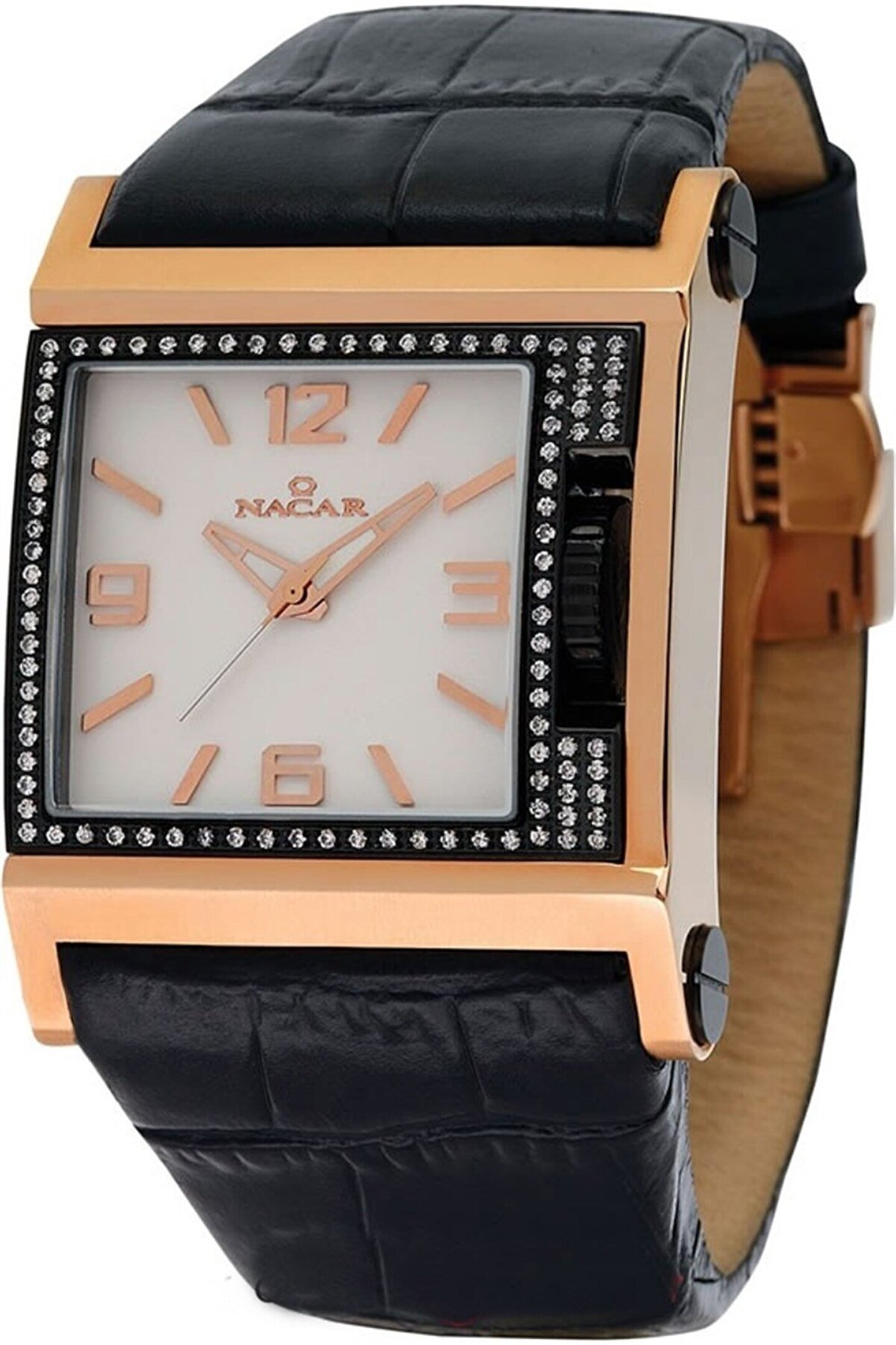 Çelik Kasa Deri Kayış Mineral Cam Sıworoski taşlı Takvim 30m Ebatı:36X46mm