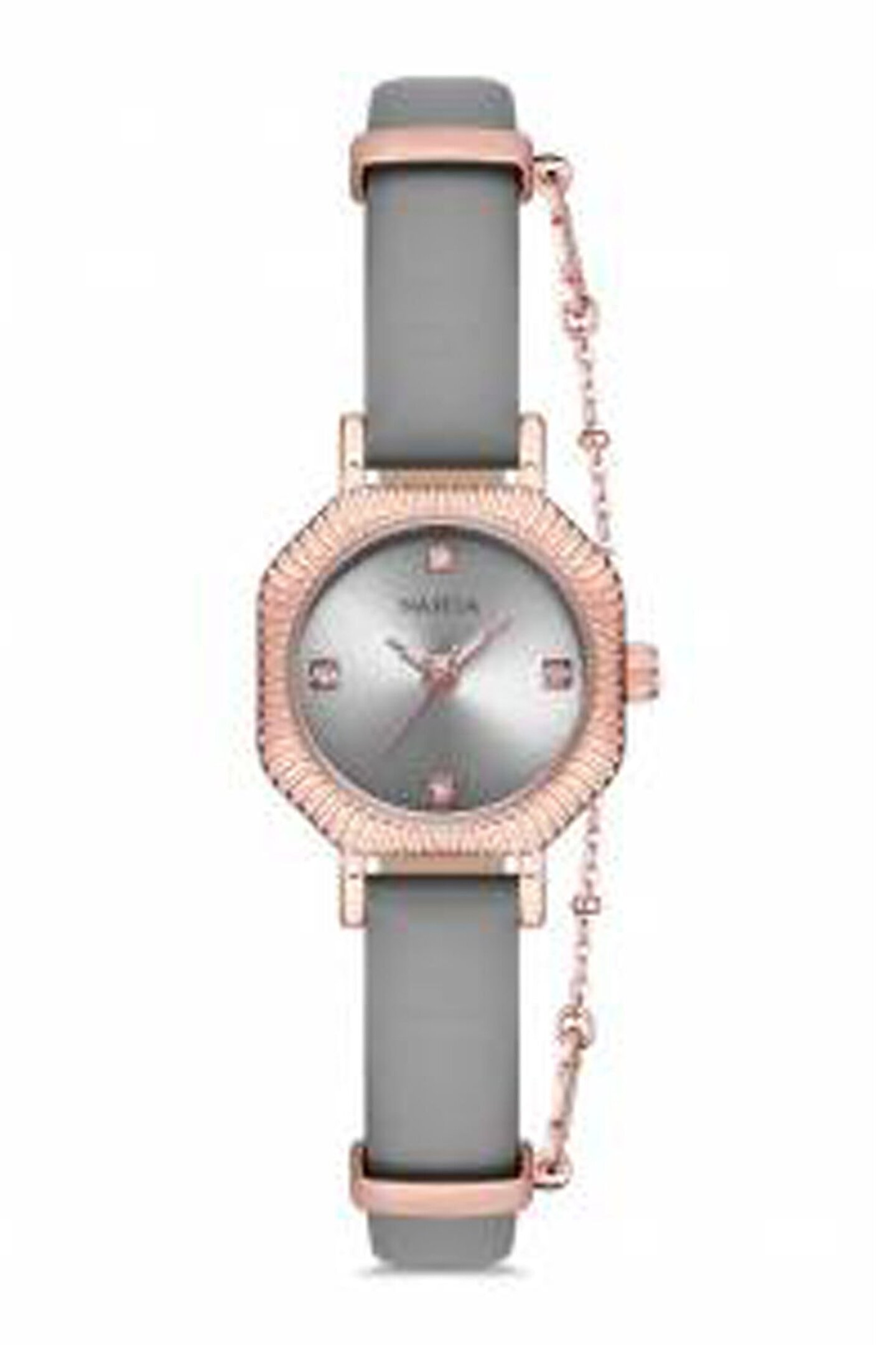 Metal kasa materyali ile dayanıklılığı ve şıklığı bir arada sunar; Rose gold rengiyle zarif ve modern bir görünüm sağlar; Düz cam şekli, saatin klasik ve zamansız tasarımını ön plana çıkarır; Quartz mekanizması sayesinde zamanı hassas ve doğru bir şekilde takip eder; Mineral cam tipi, çizilmelere karşı ekstra koruma sunarak saatinizin ekranını uzun süre yeni gibi kalmasını sağlar; Deri kordon materyali, konforlu bir kullanım ve şık bir dokunuş ekler;