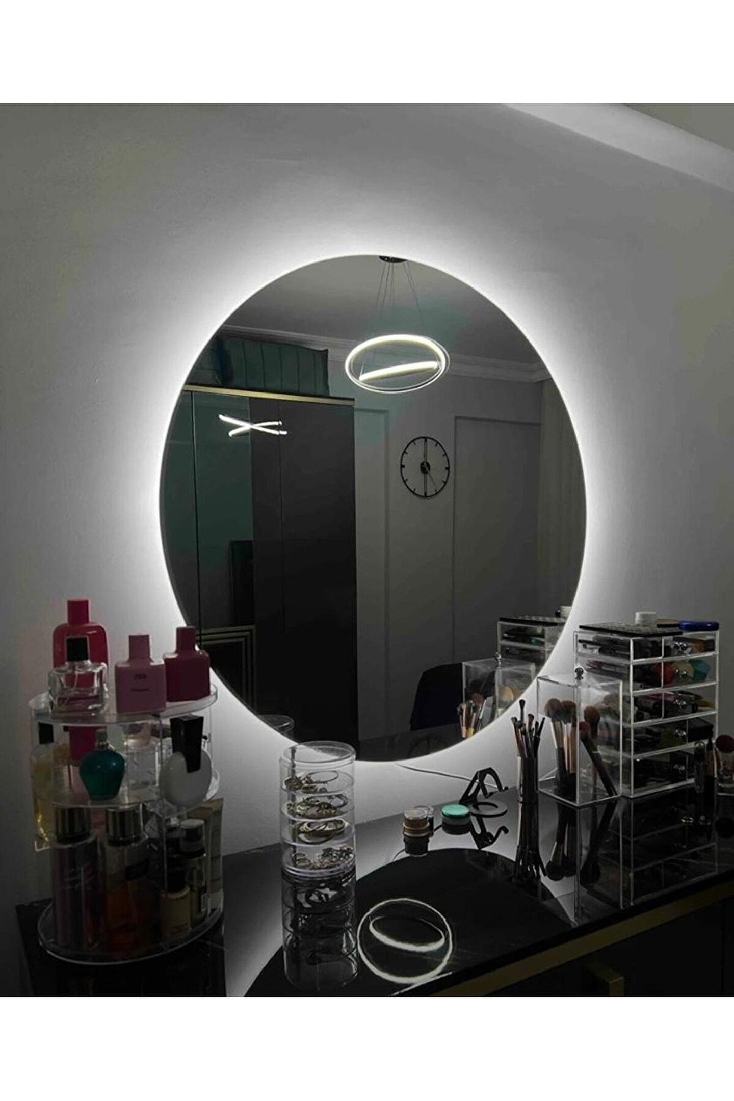 Narkissos Dizayn 90 cm Beyaz Ledli Yuvarlak Banyo Aynası Makyaj Aynası Trafolu