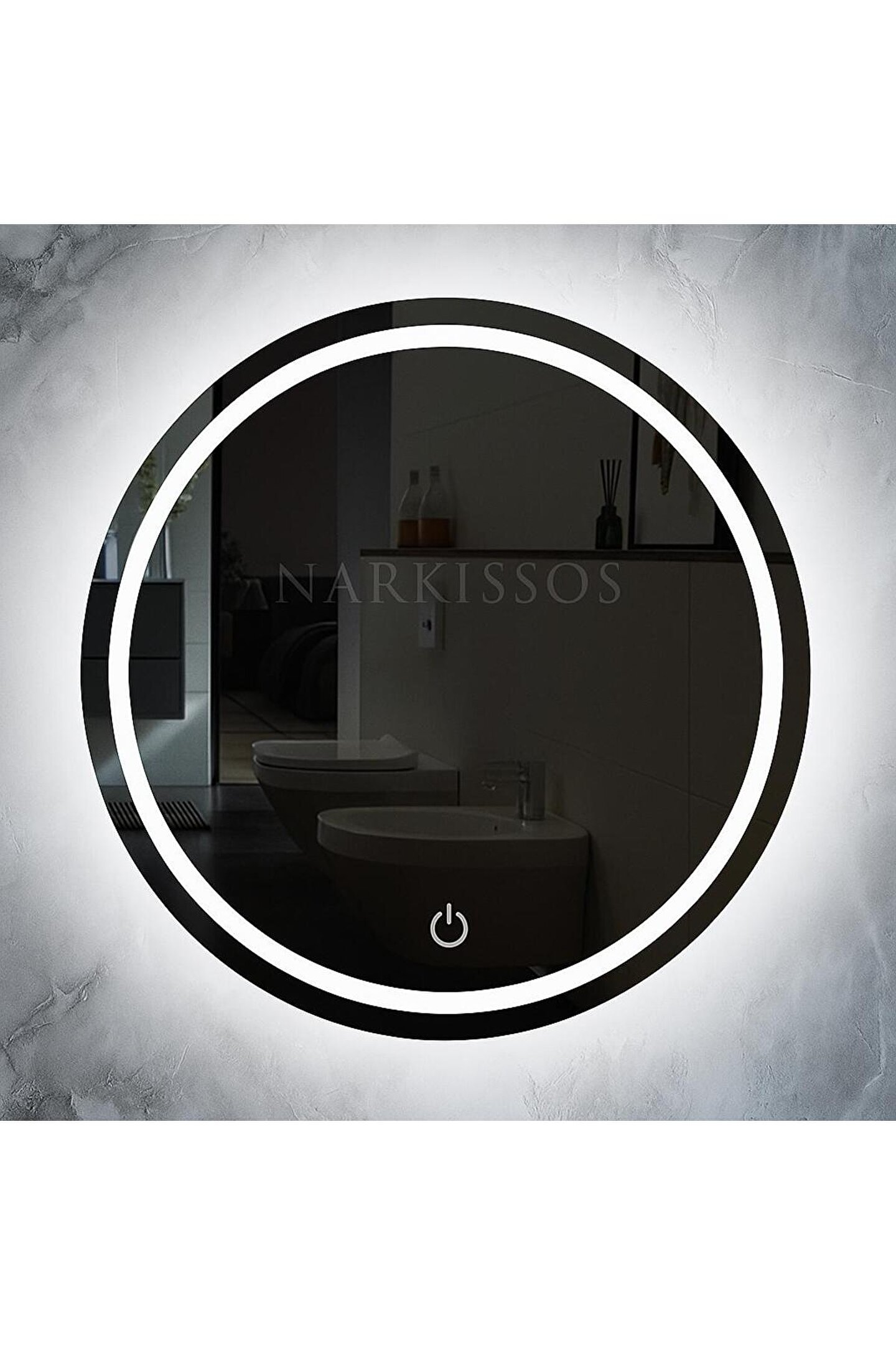 Narkissos Dizayn 90 cm DOKUNMATİK BEYAZ LEDLİ BANYO AYNASI KUMLAMALI -SALON-KAFE LED AYNA