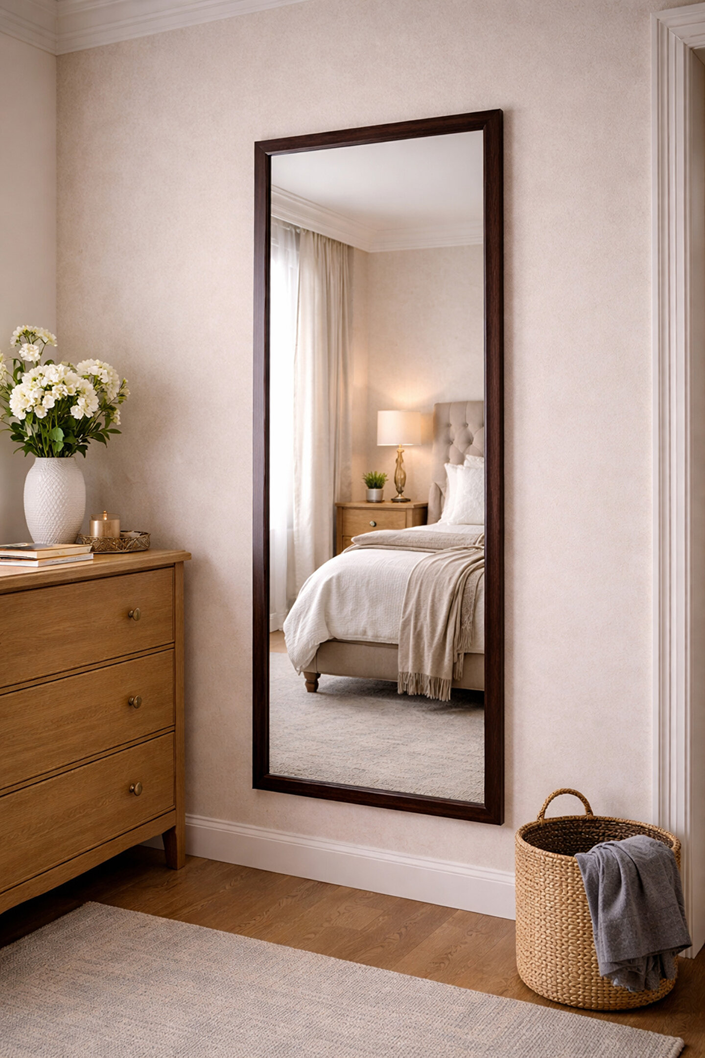 Narkissos Dizayn Ahşap Görünüm Kahverengi Çerçeveli Duvar Aynası-Özel Ölçü Seçenekleri-3cm Çerçeve Genişliği