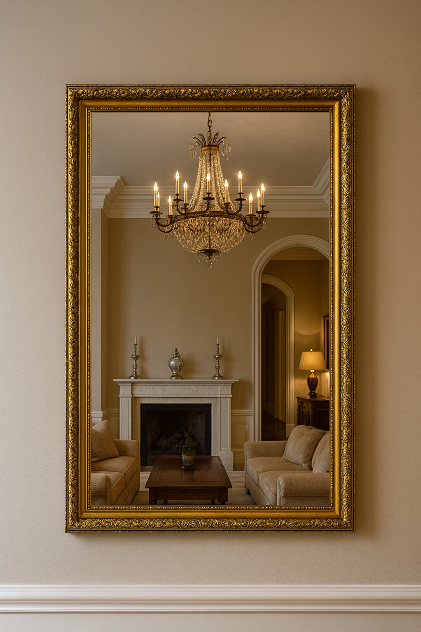 Narkissos Dizayn Altın Varaklı Çerçeveli Ayna-5cm Çerçeve Genişliği-Gold Ayna-Klasik Ayna-Varaklı Ayna - Salon Ayna
