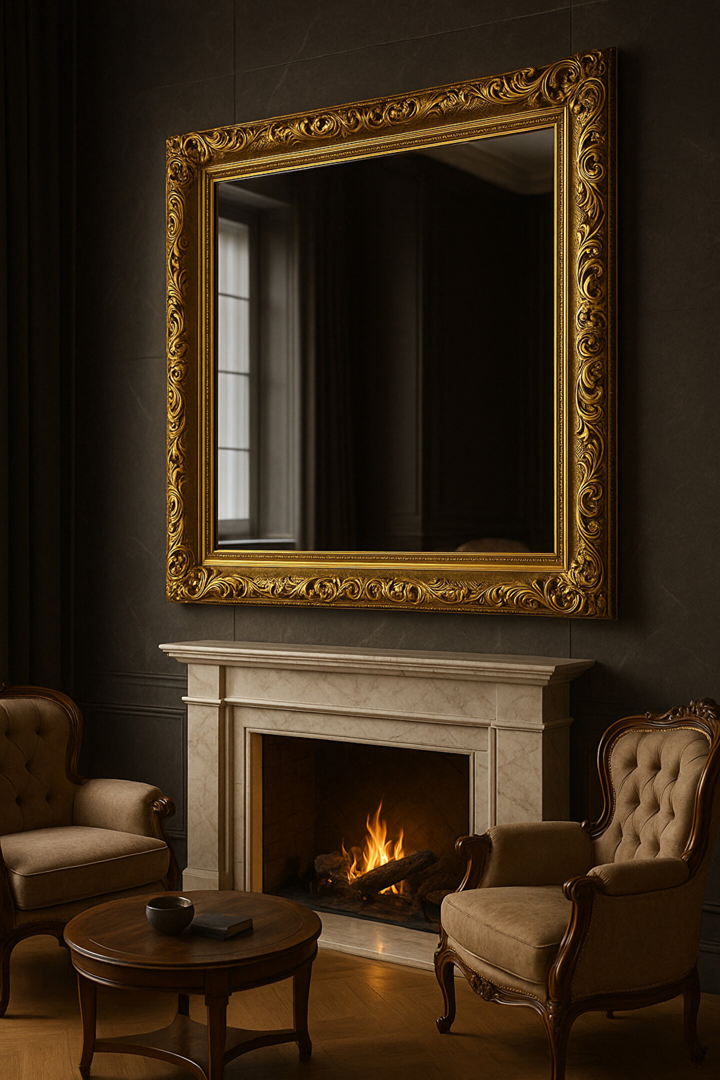 Narkissos Dizayn Altın Varaklı Çerçeveli Ayna-9cm Çerçeve Genişliği- Gold Ayna - Klasik Ayna- Salon Ayna