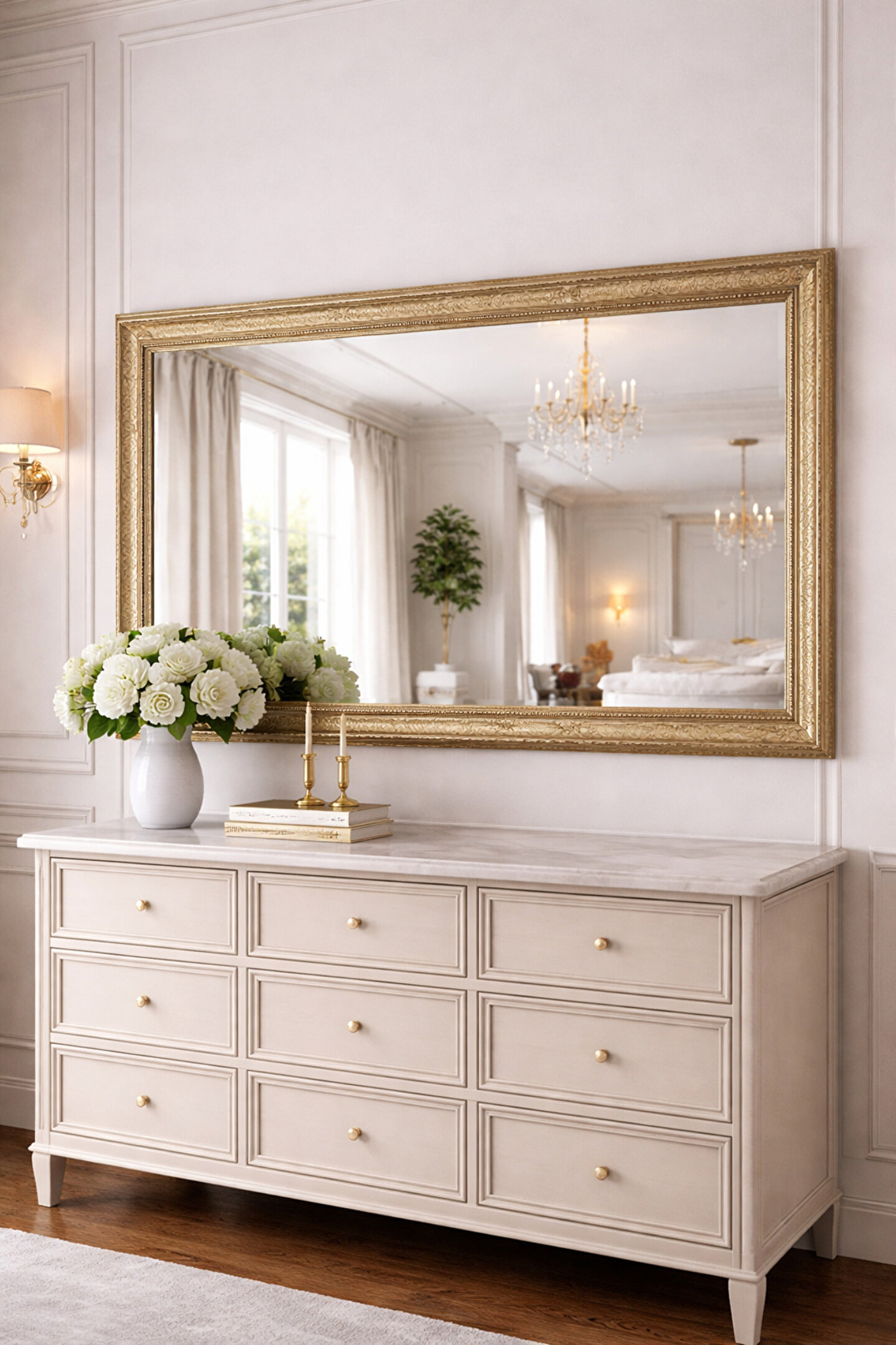 Narkissos Dizayn Bej Renk Eskitme Altın Klasik Çerçeveli Ayna-9cm Çerçeve Genişliği-Barok Desenli (Özel Ölçü)