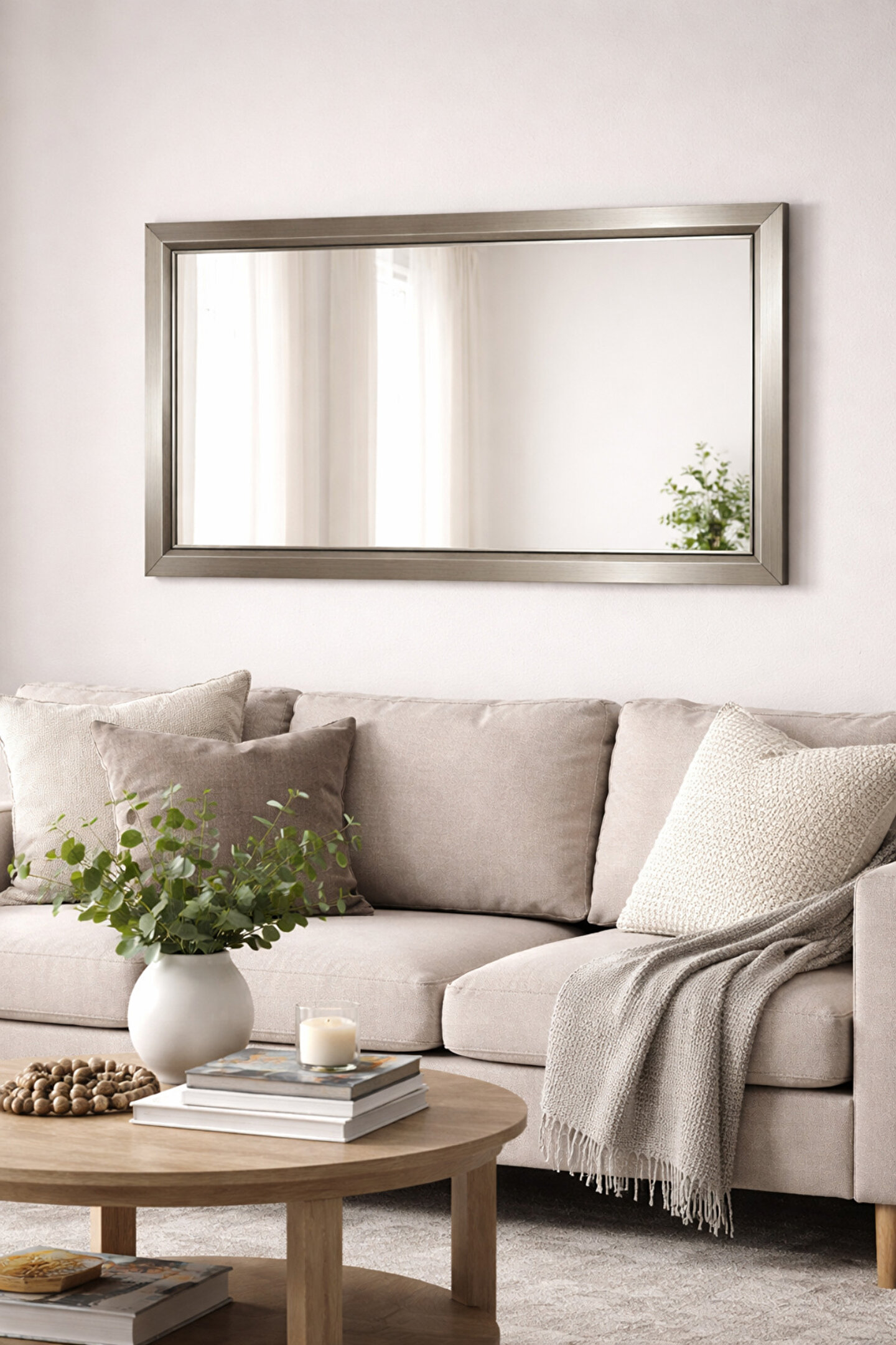 Narkissos Dizayn Gümüş Gri Çerçeveli Duvar Aynası & Boy Aynası-Özel Ölçü Seçenekleri-3cm Çerçeve Genişliği