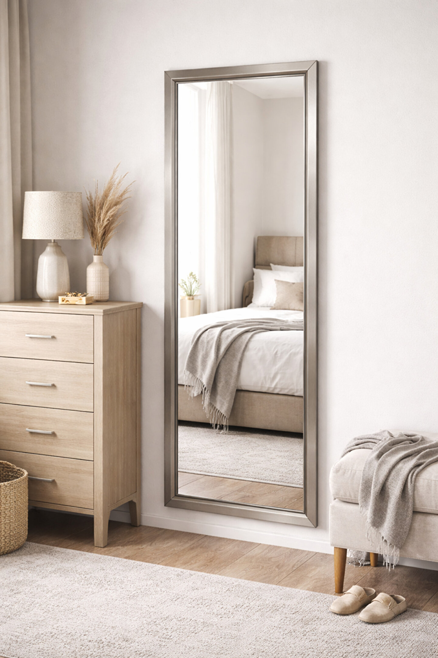 Narkissos Dizayn Gümüş Gri Çerçeveli Duvar Aynası & Boy Aynası-Özel Ölçü Seçenekleri-3cm Çerçeve Genişliği