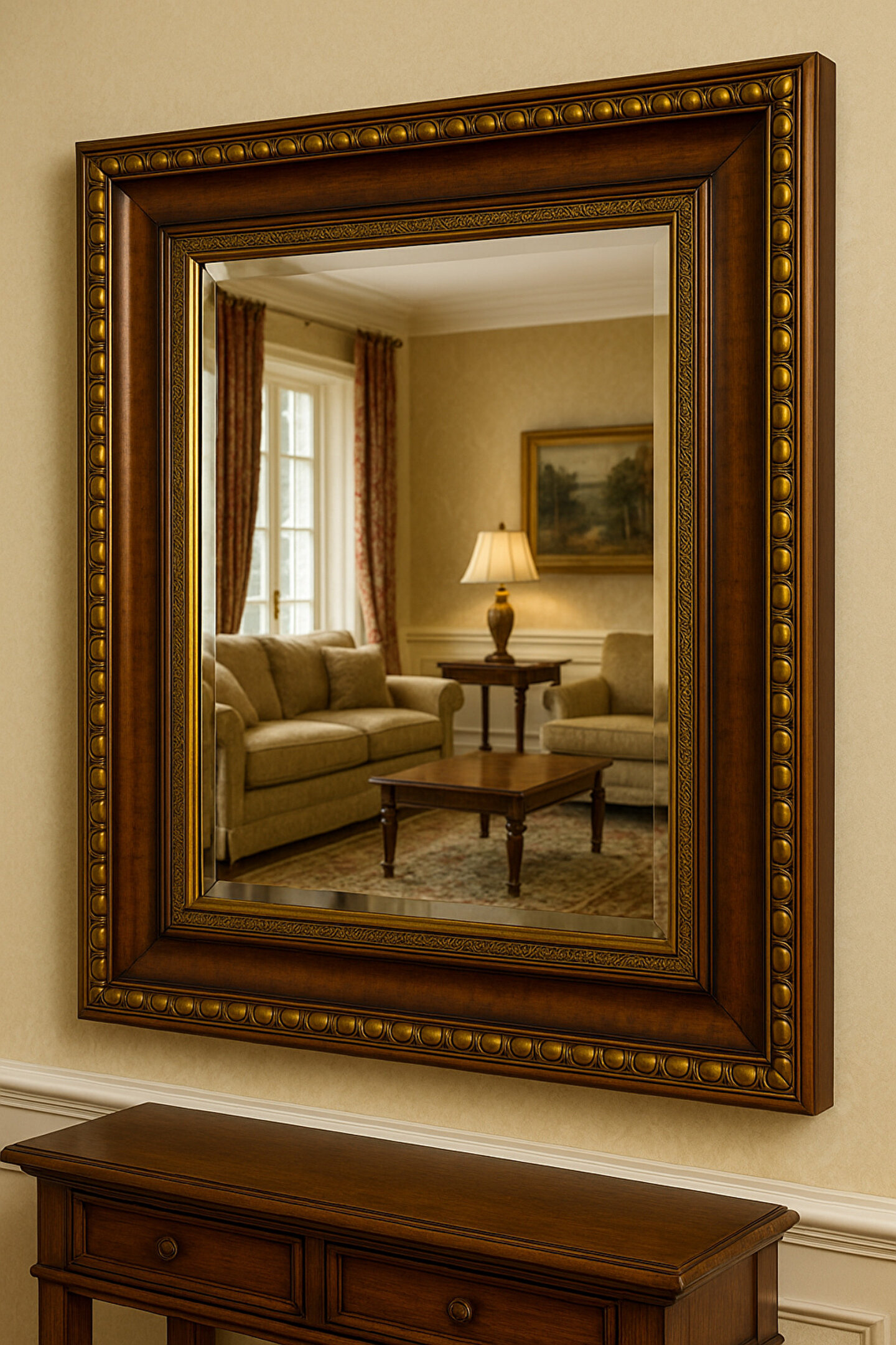 Narkissos Dizayn Kahverengi Gold Altın Varaklı Çerçeveli Ayna 9cm Genişlikte Çerçeve-Gold Ayna-Klasik Ayna-Salon Ayna