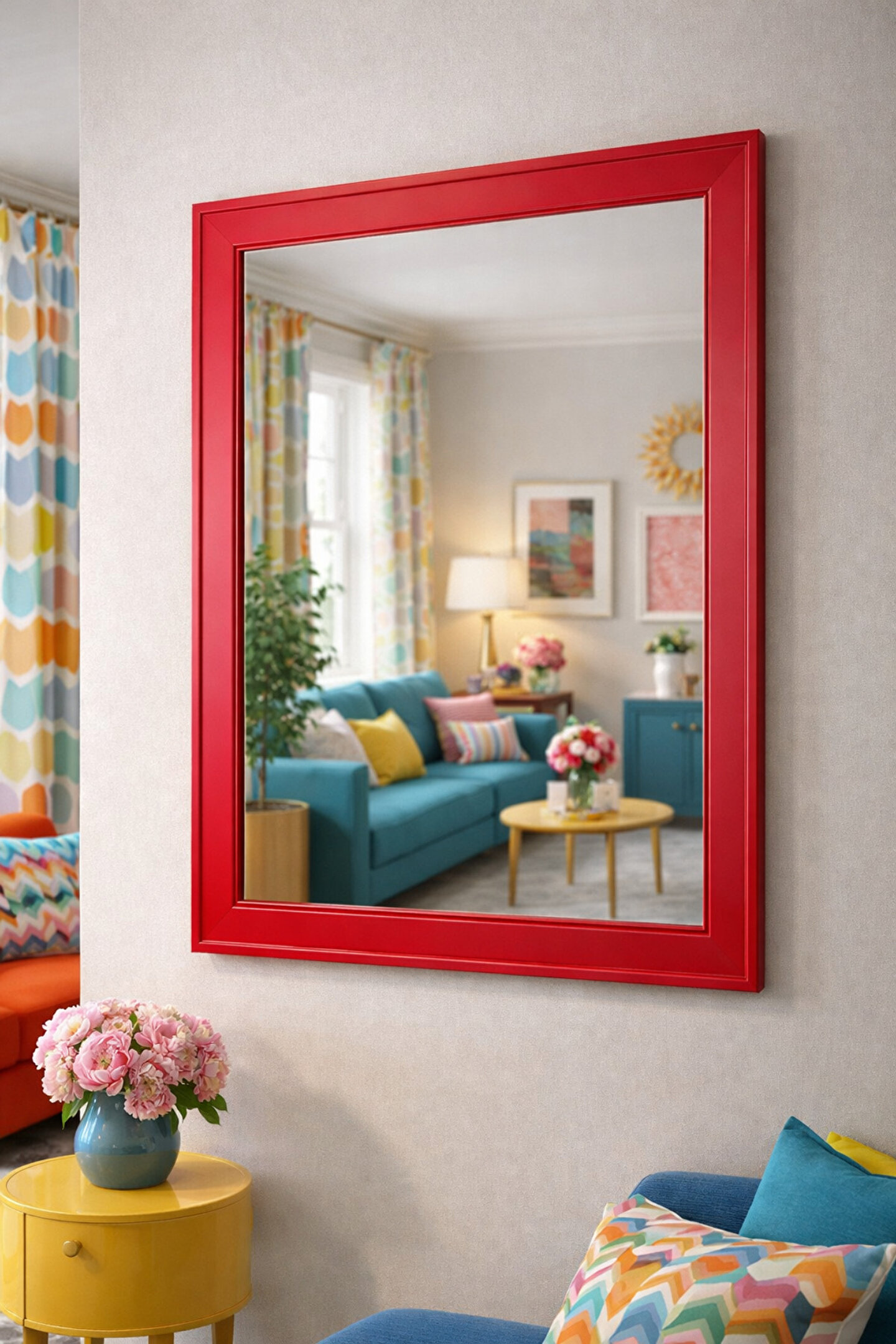 Narkissos Dizayn Kırmızı Çerçeveli Duvar Aynası - Dekoratif Ayna - Özel Ölçü - 5cm Çerçeve Genişliği