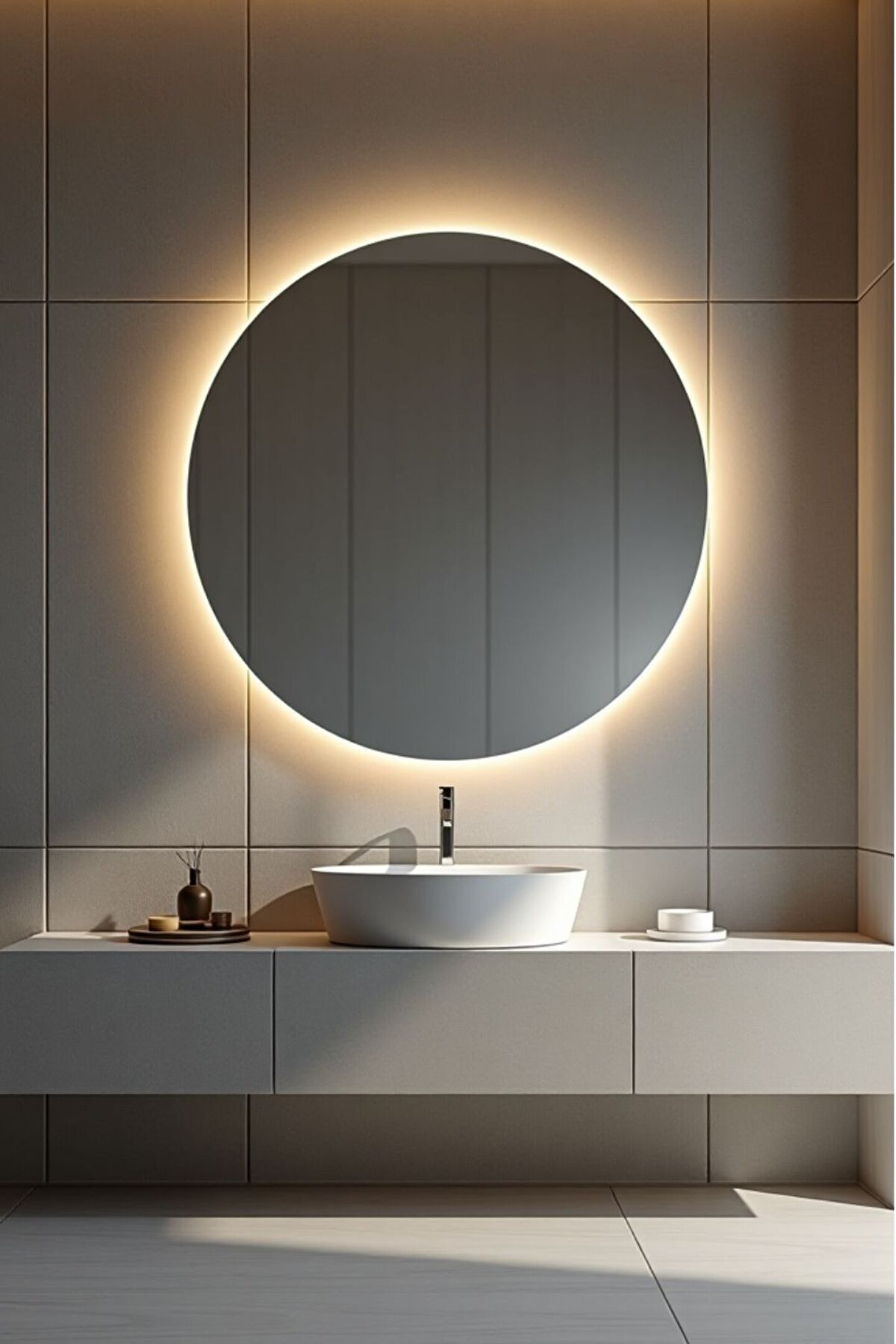 Narkissos Dizayn Pilli Kablosuz Yuvarlak Ledli Ayna
