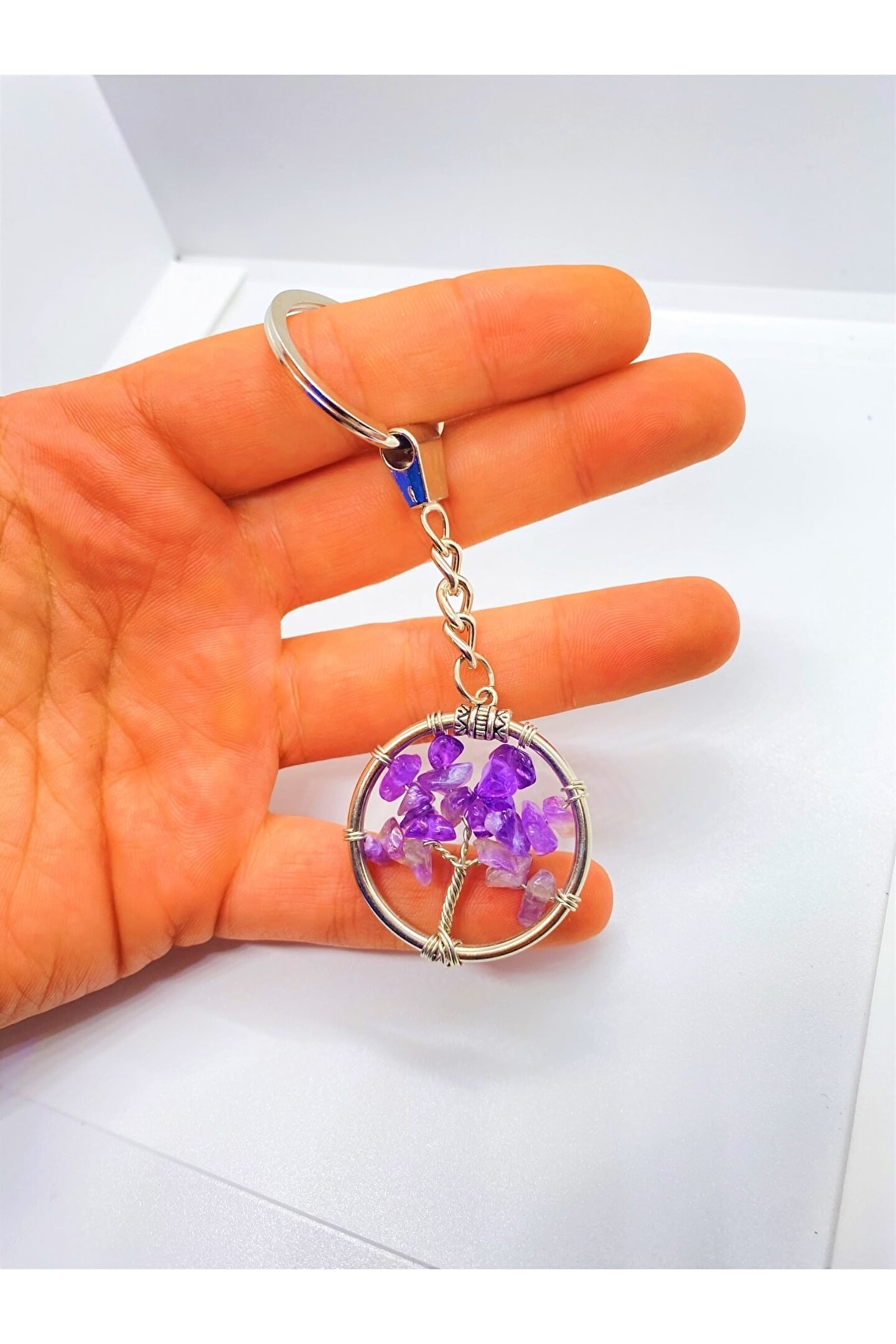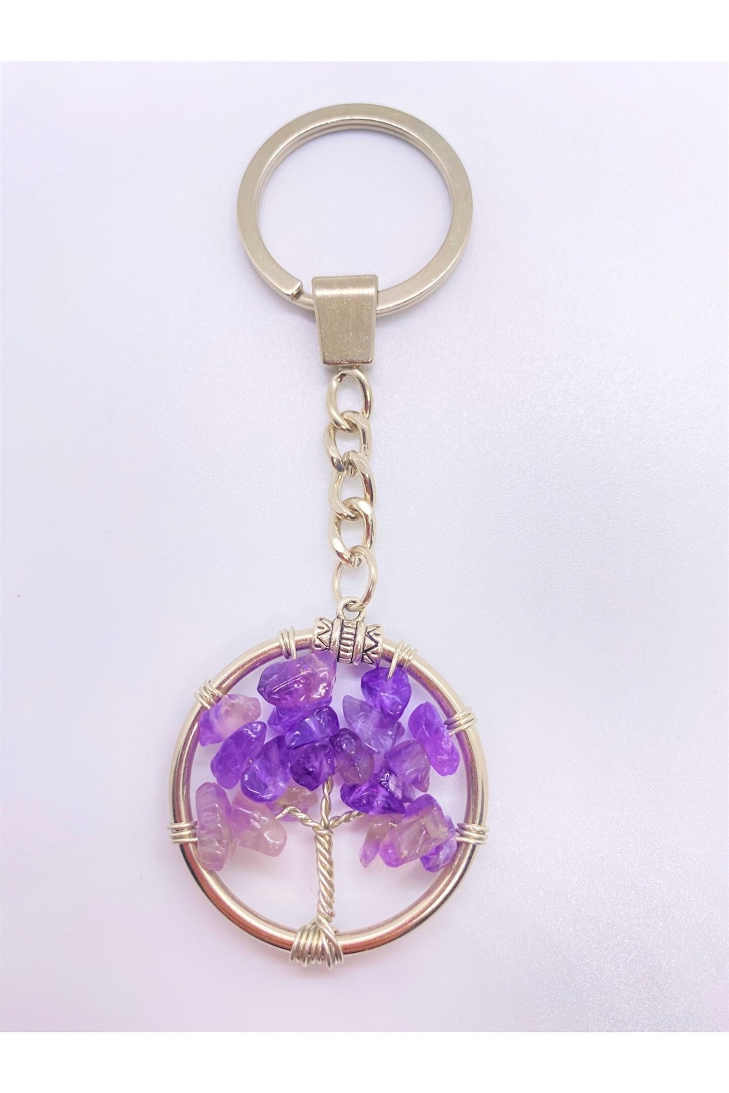 NATURALİM Ametist Doğal Taş Hayat Ağacı Anahtarlık Ve Zincir Orjinal Doğal Taş Hediyelik