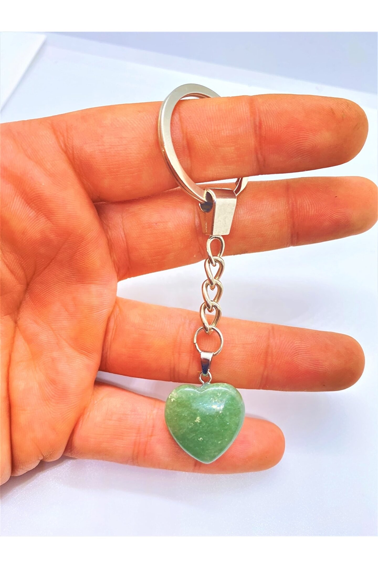 NATURALİM Aventurin Taşı Doğal Taş Kalp Anahtarlık Hediyelik
