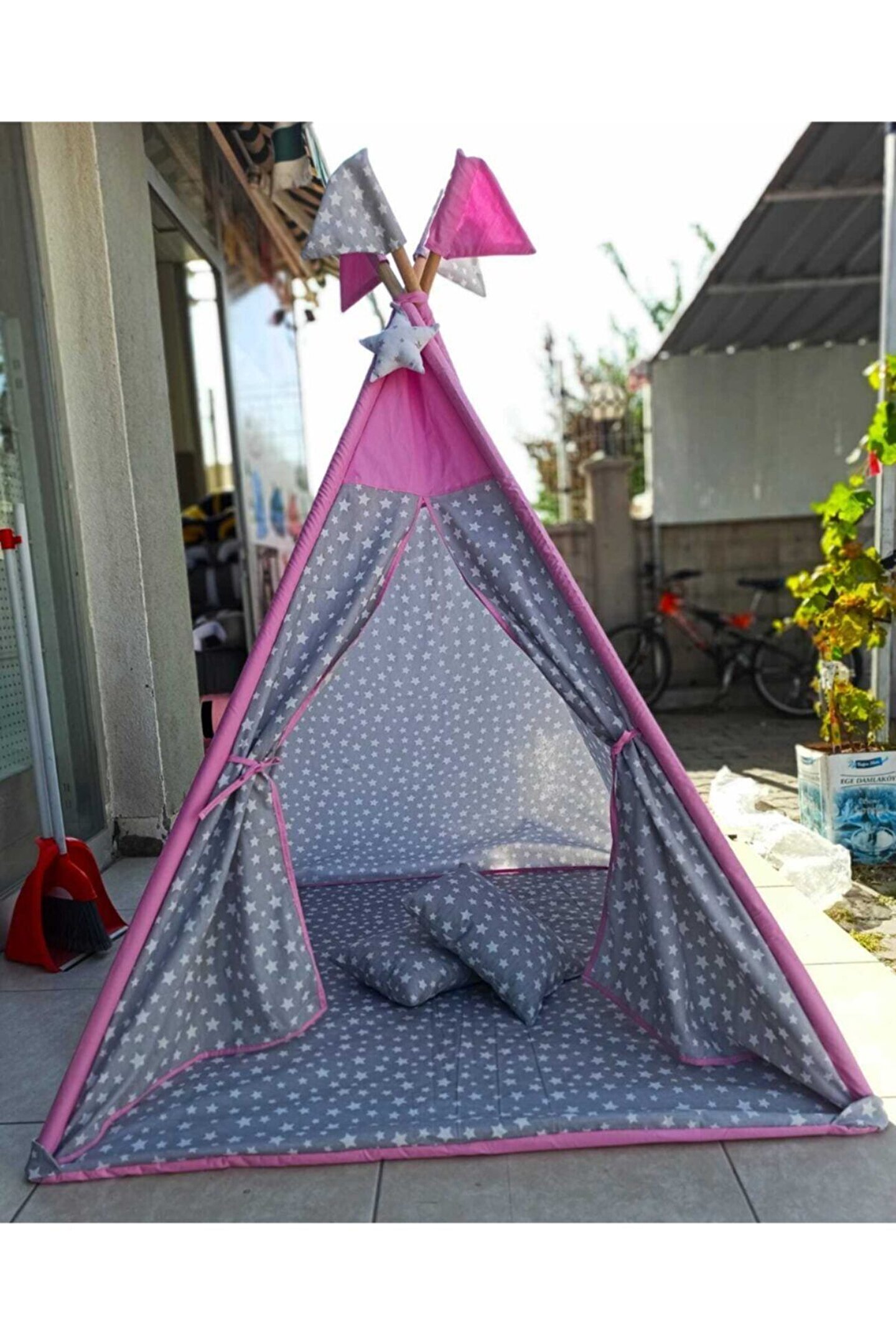 nisa baby tasarım Büyük Boy Kızılderili Oyun Çadırı Gri-pembe