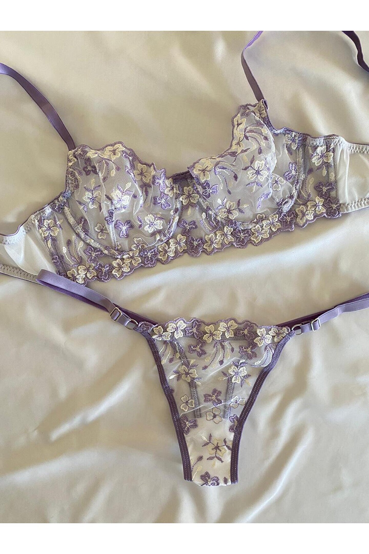 Nivolia Douce Çiçek Desenli Dantel Tül Bralet Takım