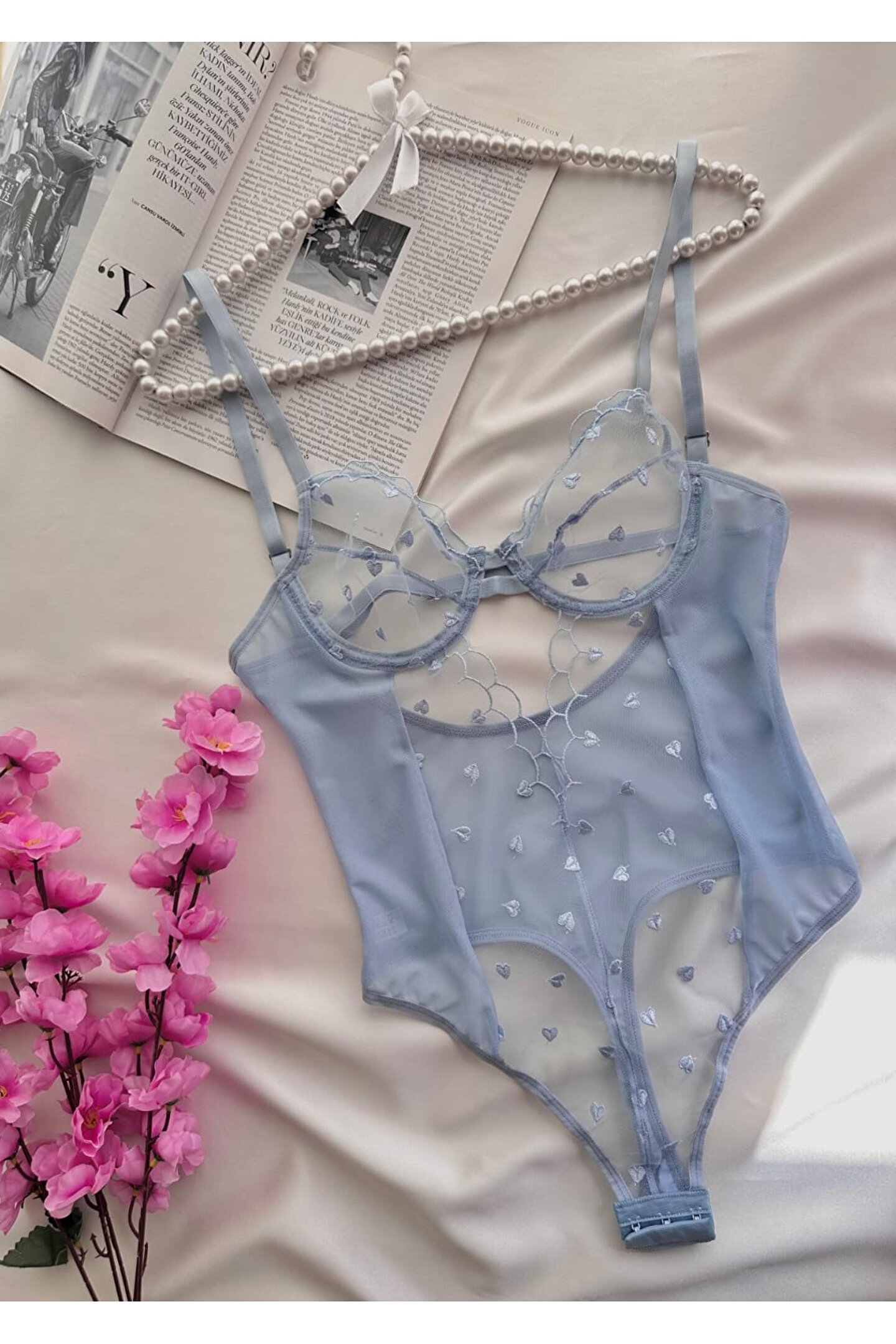 Nivolia Douce Kalp işlemeli Tül Bodysuit