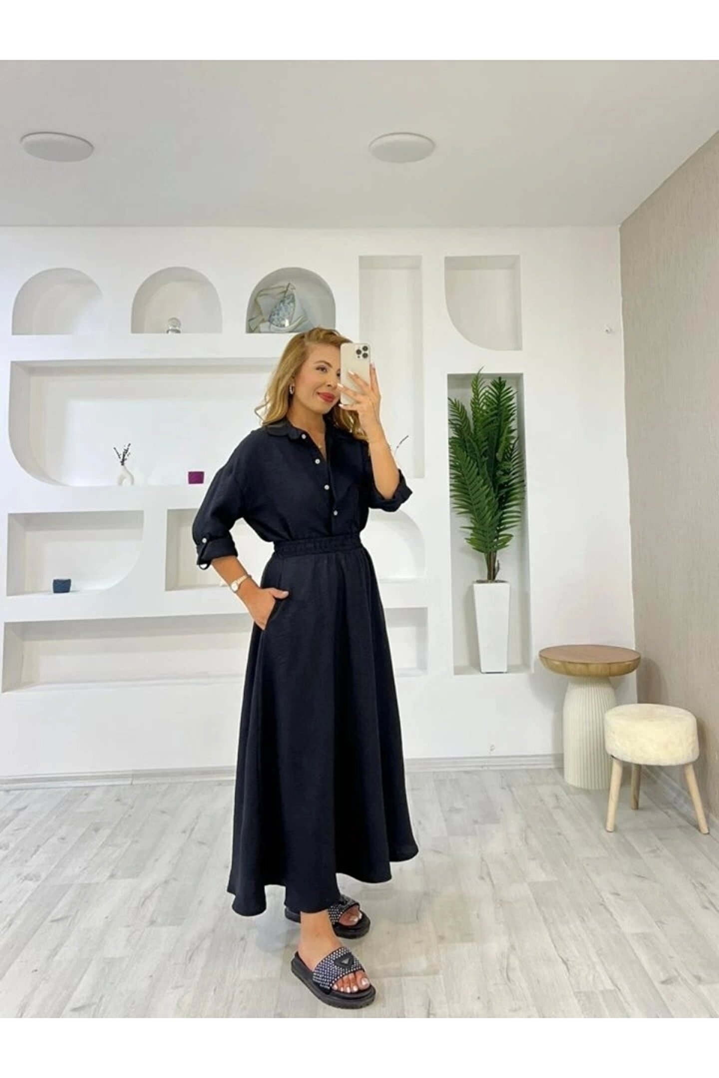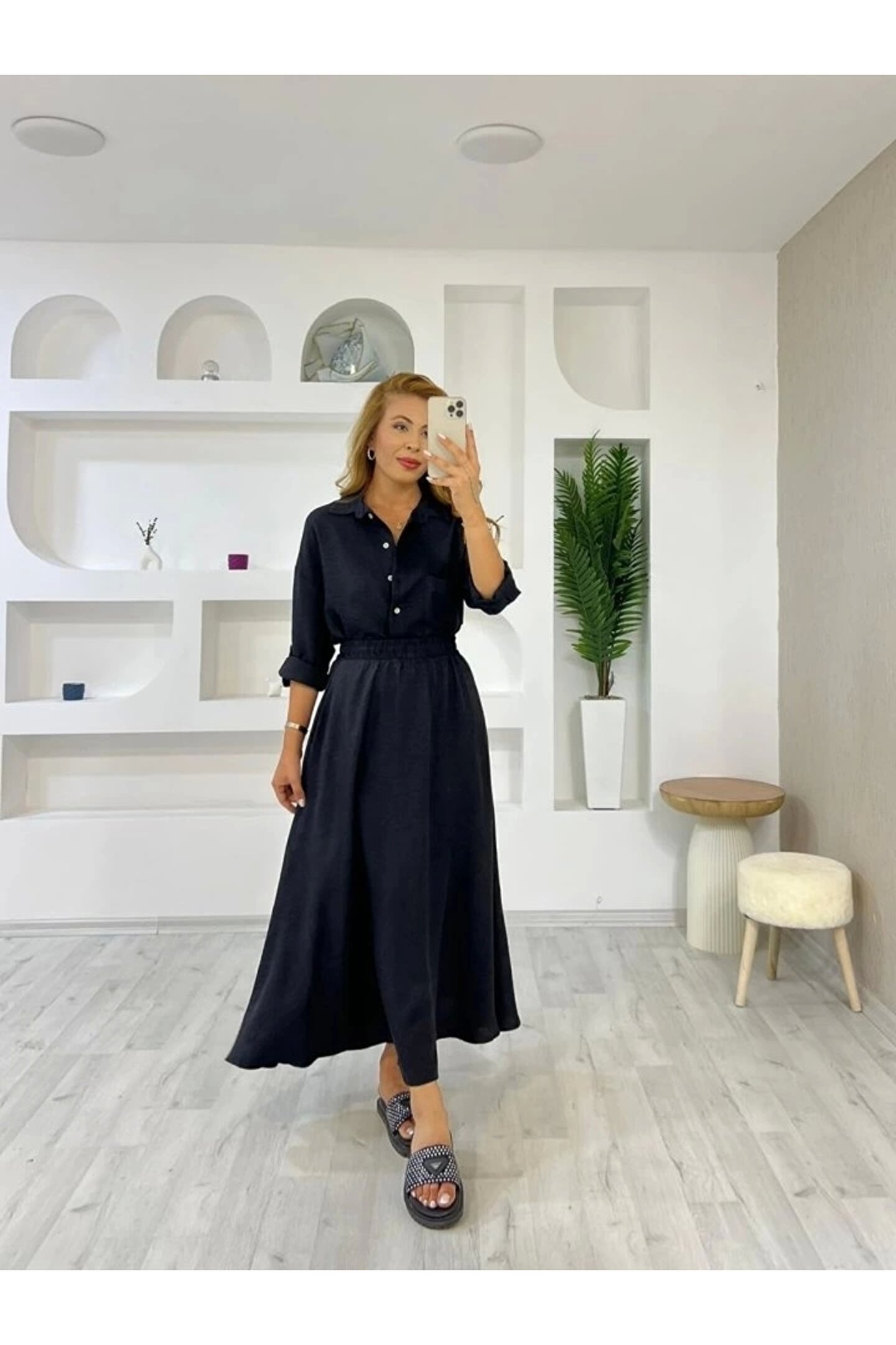 Kadın Keten Kumaş Gömlek Ve Etek Ikili Takim.; Ürün detayları ve kullanım hissi kişisel tercihlere göre değişiklik gösterebilir.