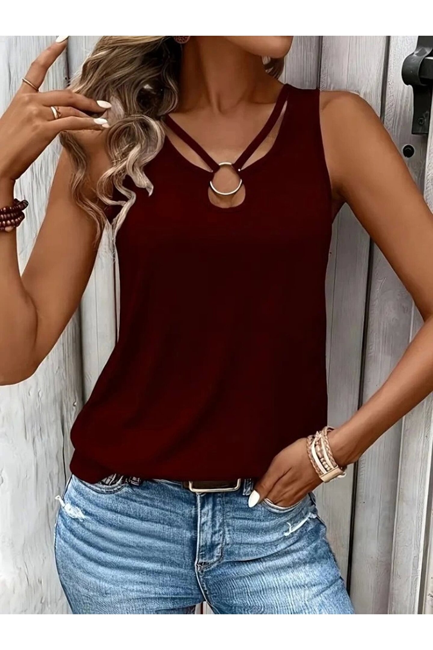 NOİR & GOLD Kadın Askılı Yaka şerit Halka Detaylı Viskon Bluz