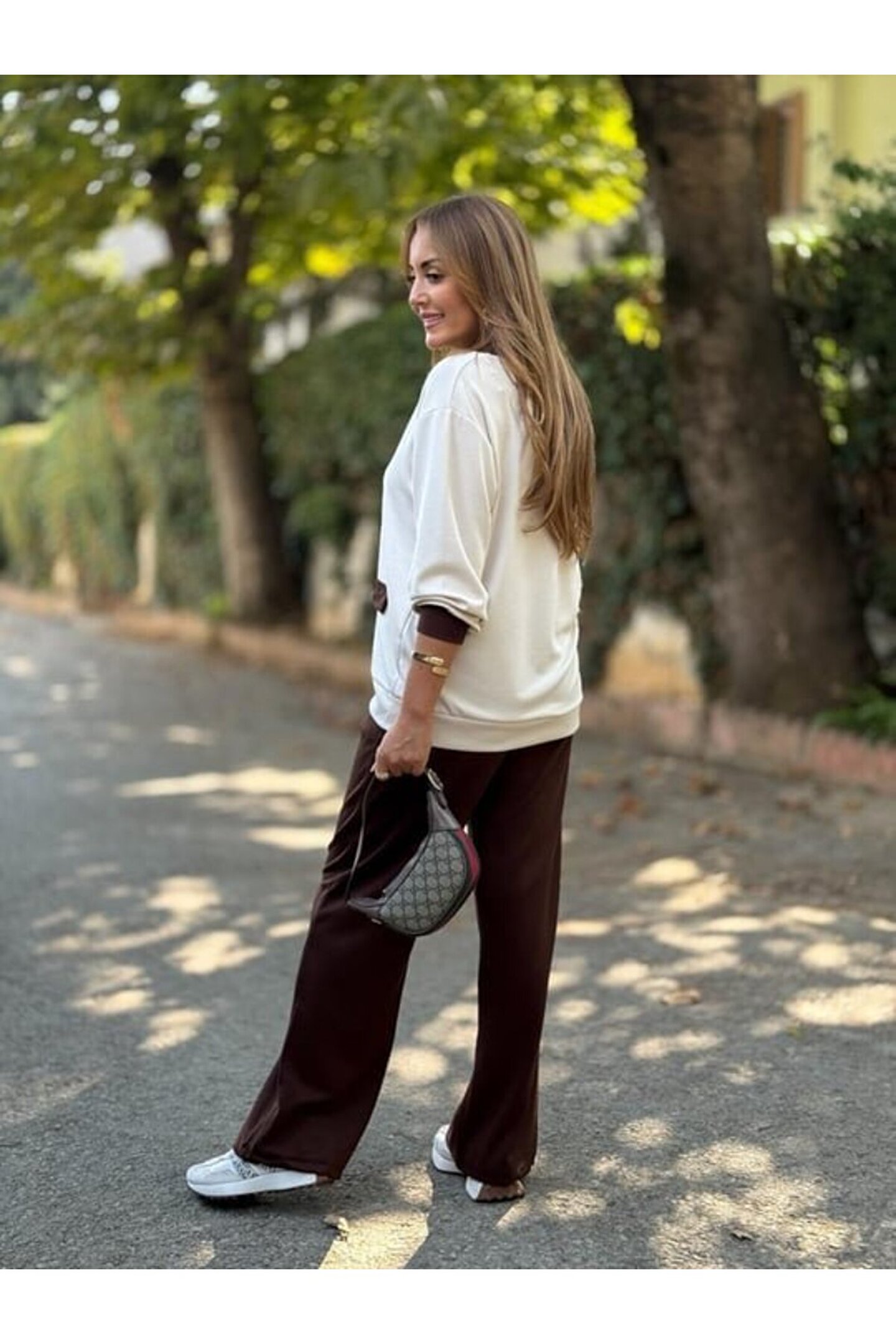 NORA Boutique EQURİ Kadın Uzun Kollu Ribanali Cep Detay Hırka Ve Bol Paça Pantolon Ikili Takım