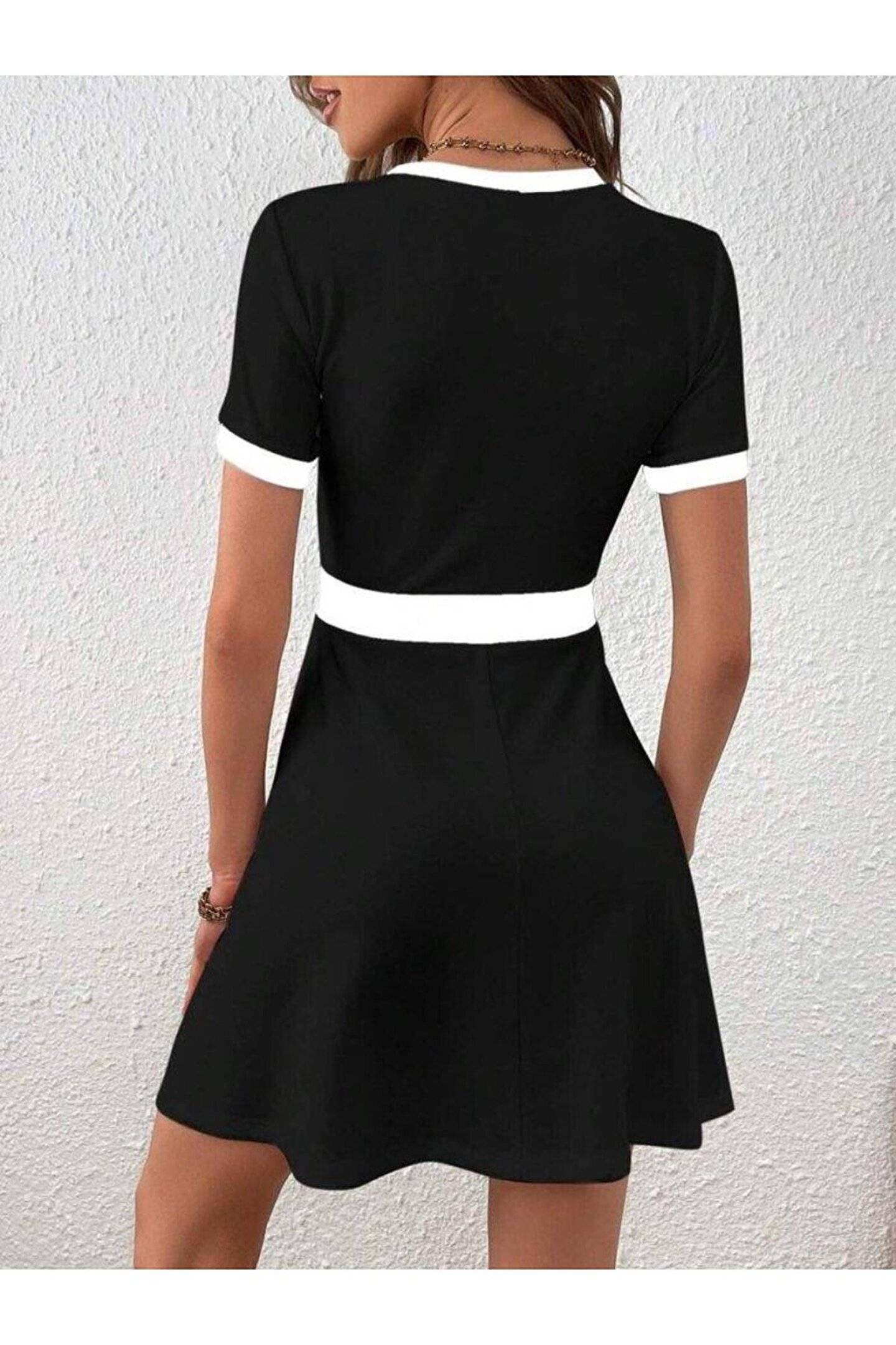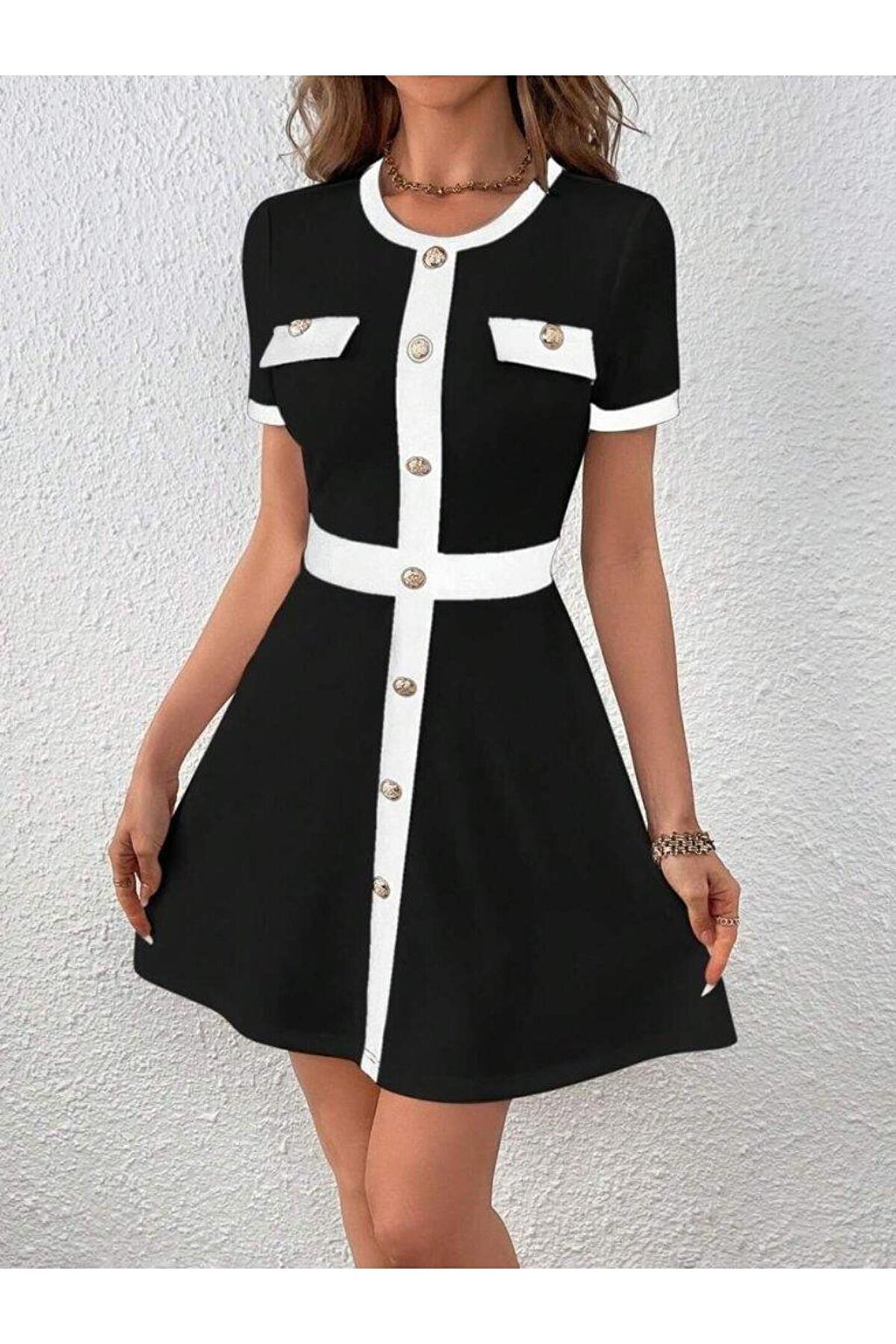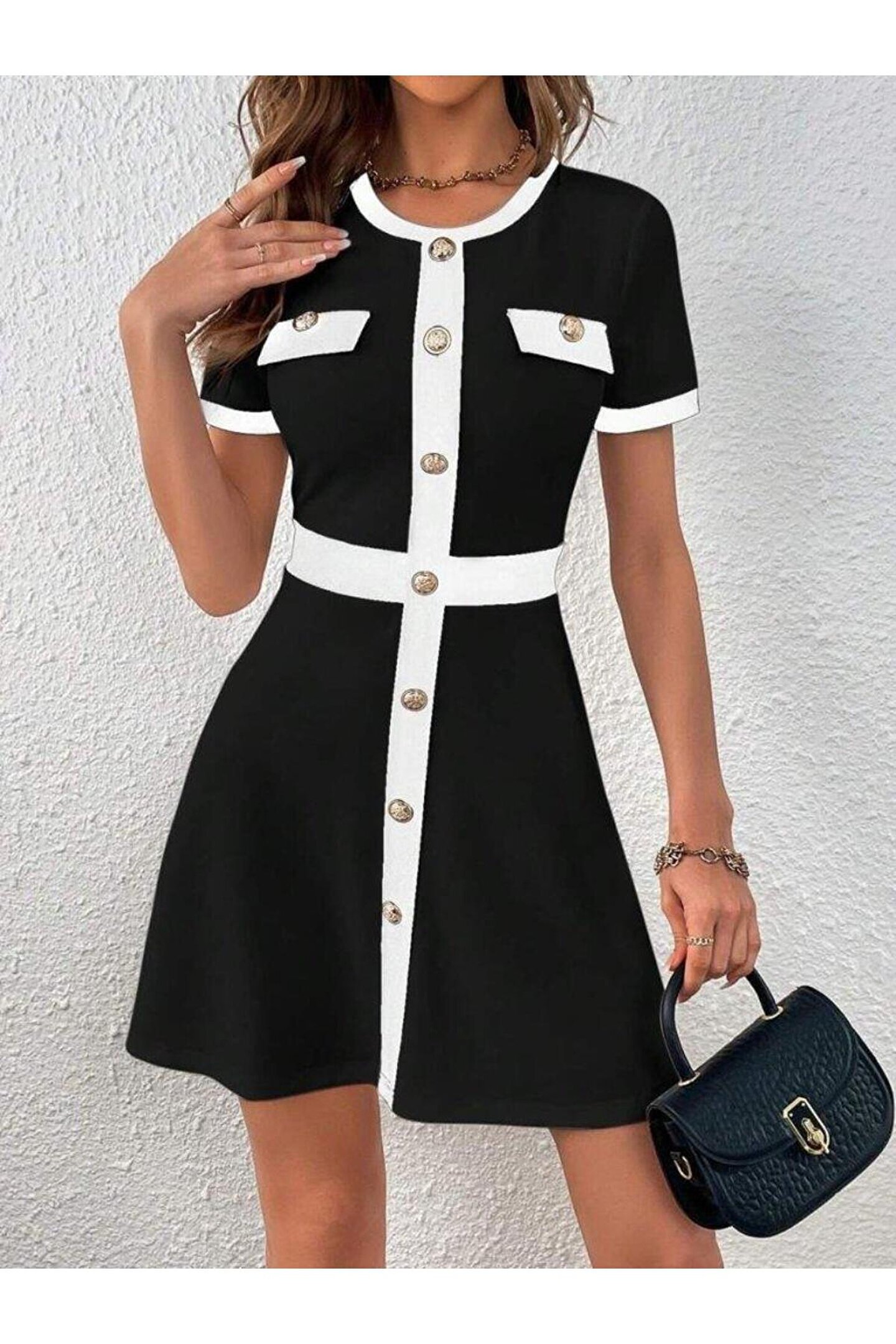 NORA Boutique Kadın Kısa Kollu Bisiklet Yaka önden Düğmeli Modal Elbise
