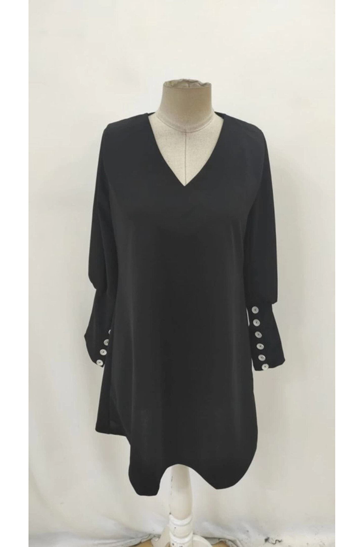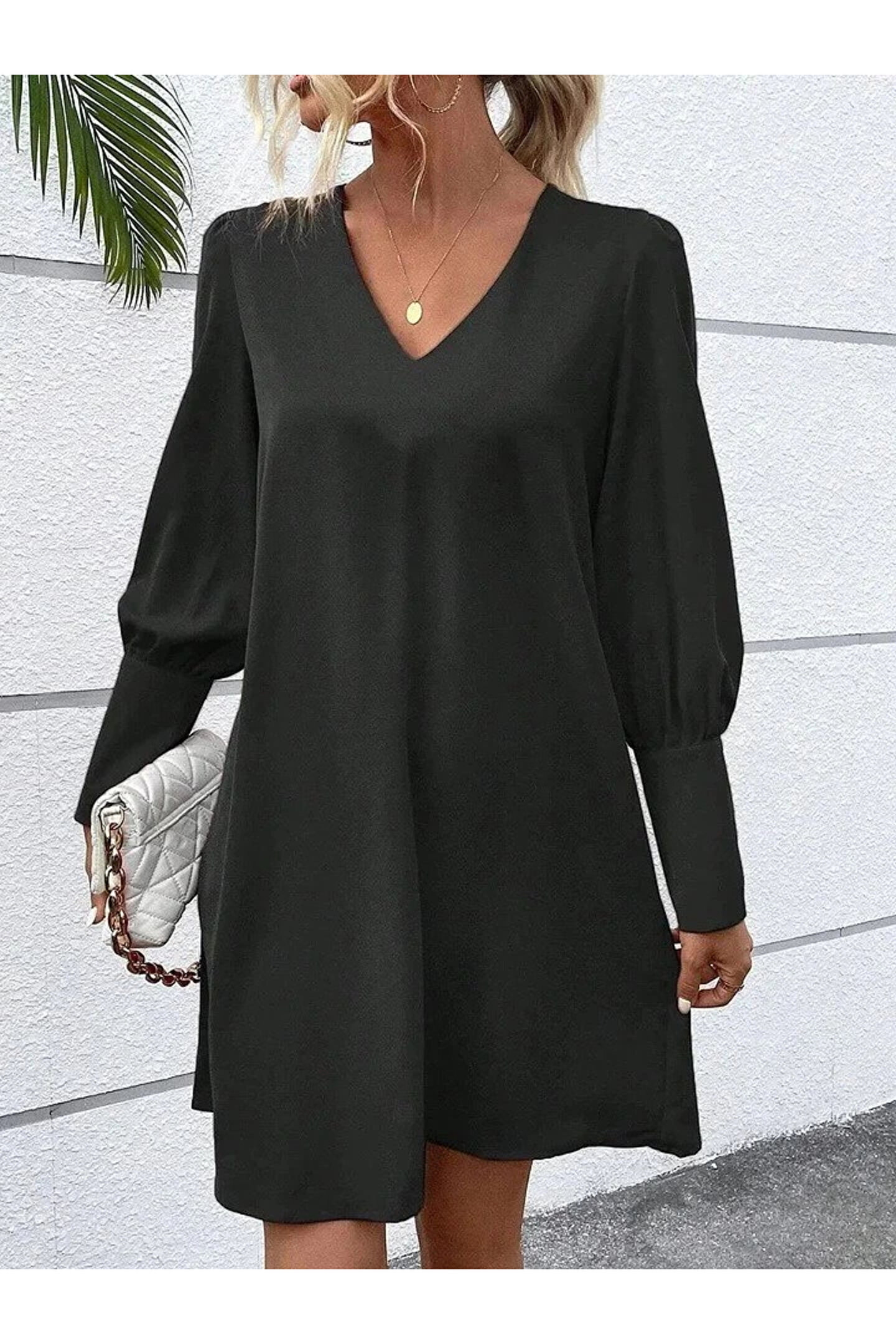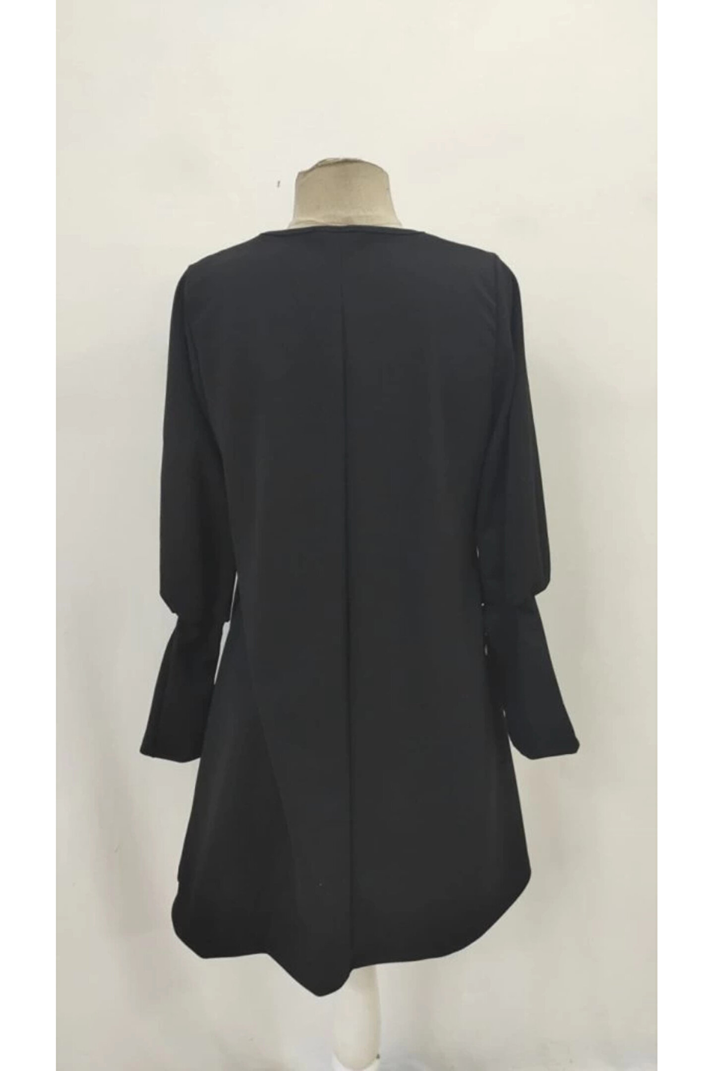 Kadın Uzun Kollu V Yakalı Kısa Ithal Krep Elbise