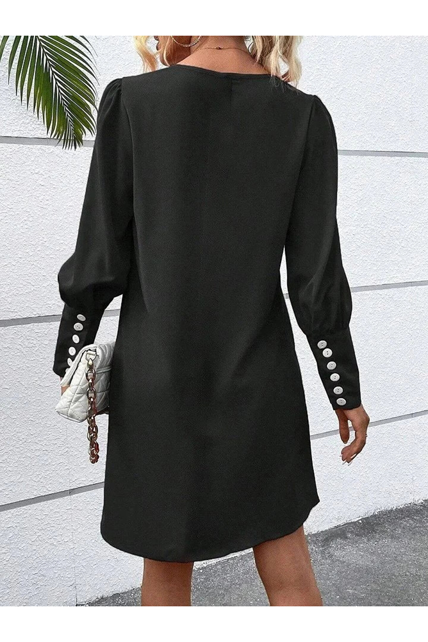 NORA Boutique Kadın Uzun Kollu V Yakalı Kısa Ithal Krep Elbise