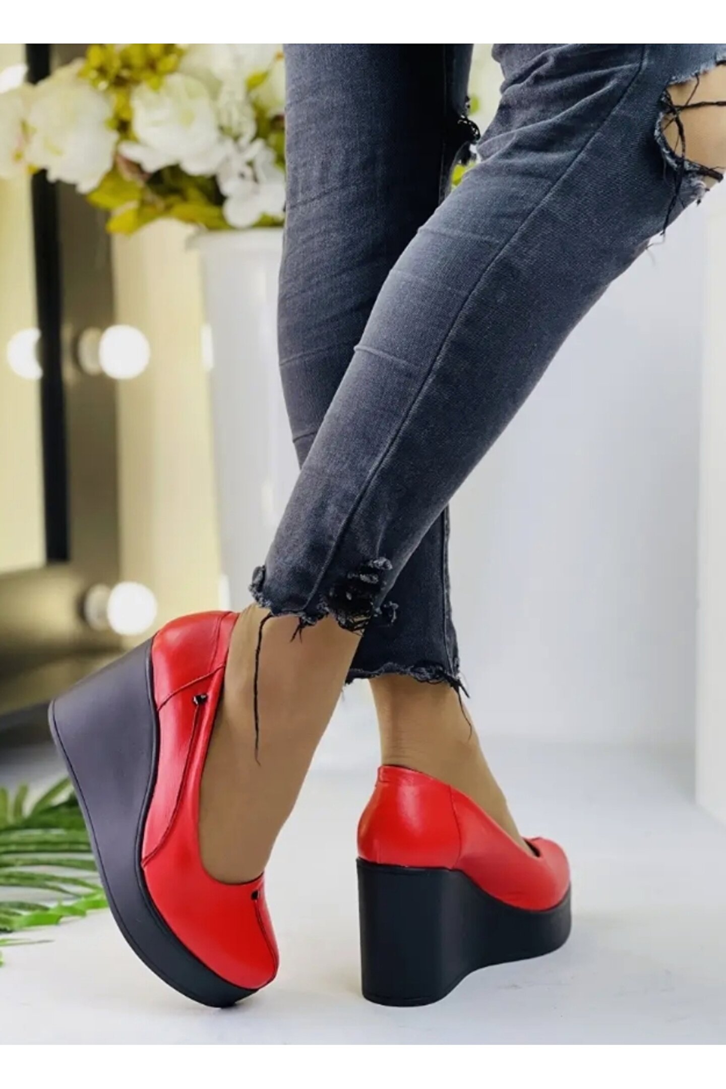İÇİ DIŞI %100 HAKİKİ DERİ SATEN DESENLİ PEDLİ İÇ TABAN DOLGU TOPUK AYAKKABI -*DİKKAT*- BİR NUMARA BÜYÜK TAVSİYE EDİLİYOR