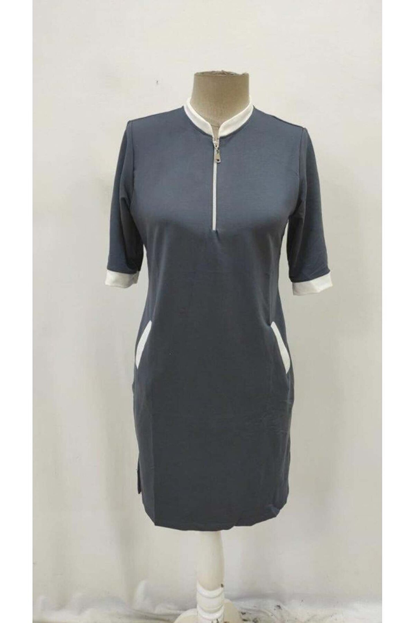novafems Kadın Kısa Kollu Yakadan Fermuarlı Cepli Yandan Yırtmaçlı Viskon Elbise