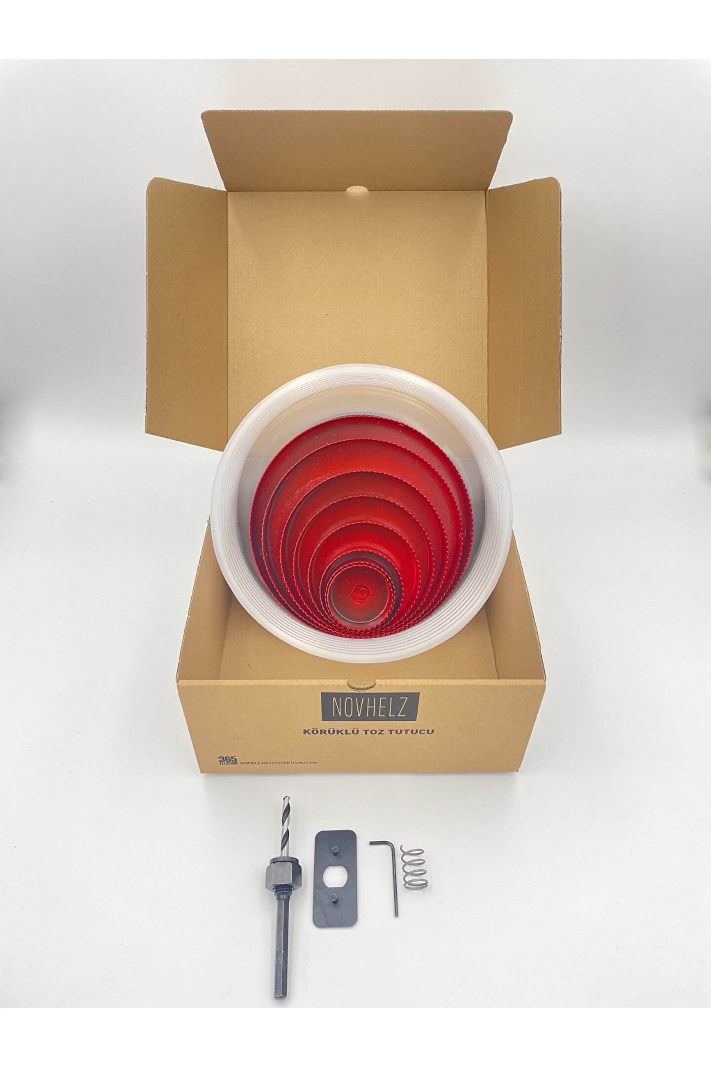 Novhelz Kırmızı Metal Panç Seti Toz Tutuculu 60-200 mm