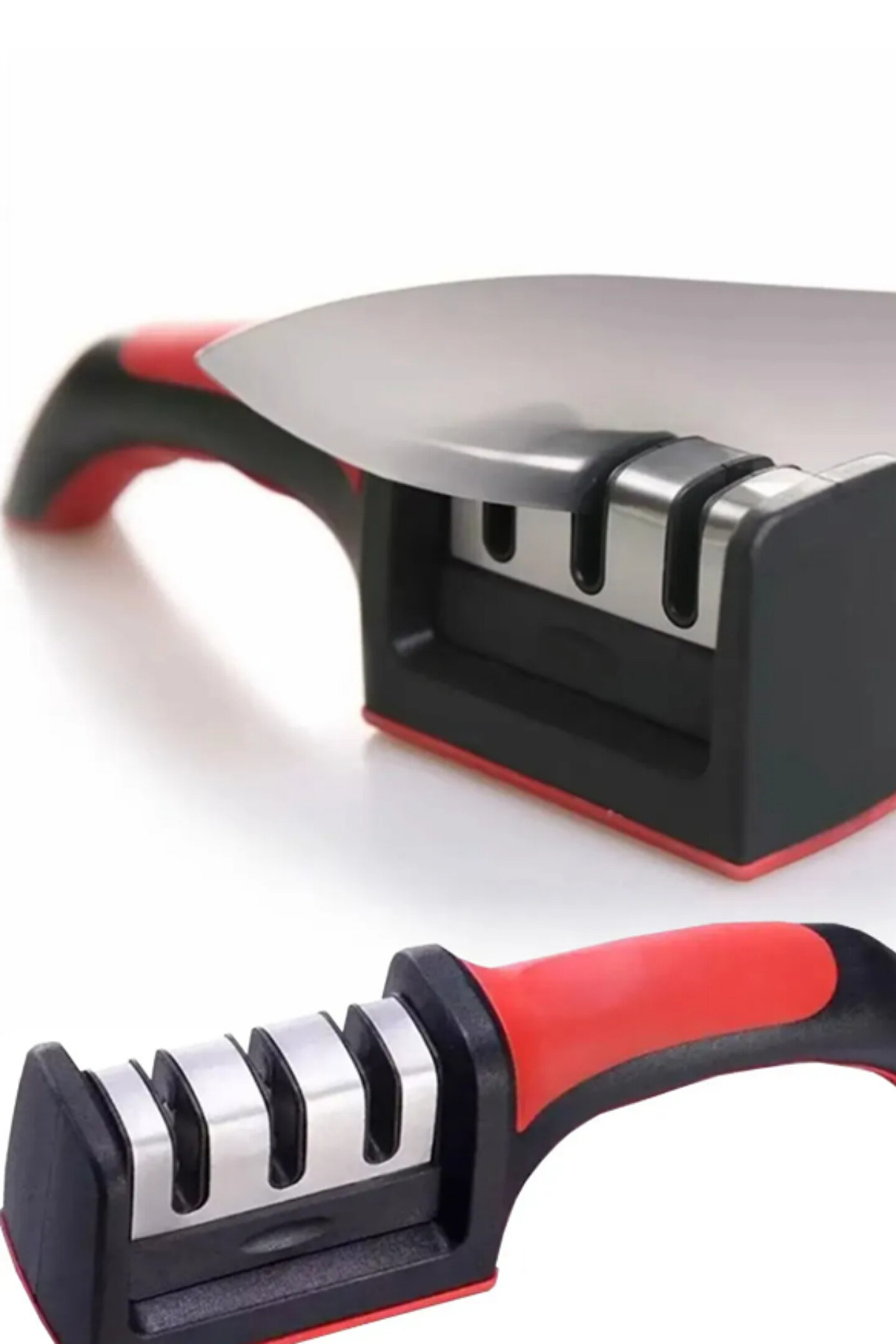 - Üç aşamalı bileme özelliği ile bıçaklarınızı kolayca keskinleştirin ve uzun süre kullanabilmenizi sağlayın.; - Her bıçağa uygun üç farklı açıyla tasarlanmış bileyici sayesinde keskinliklerini koruyun ve performanslarını artırın.; - Pratik kullanım için ideal olan bu bileme aleti, mutfak işlerinizi daha hızlı ve etkili hale getirir.; - Bakım talimatlarına uyarak (nemli bezle silerek) bıçaklarınızı temiz tutabilir ve dayanıklılığını uzatabilirsiniz.;