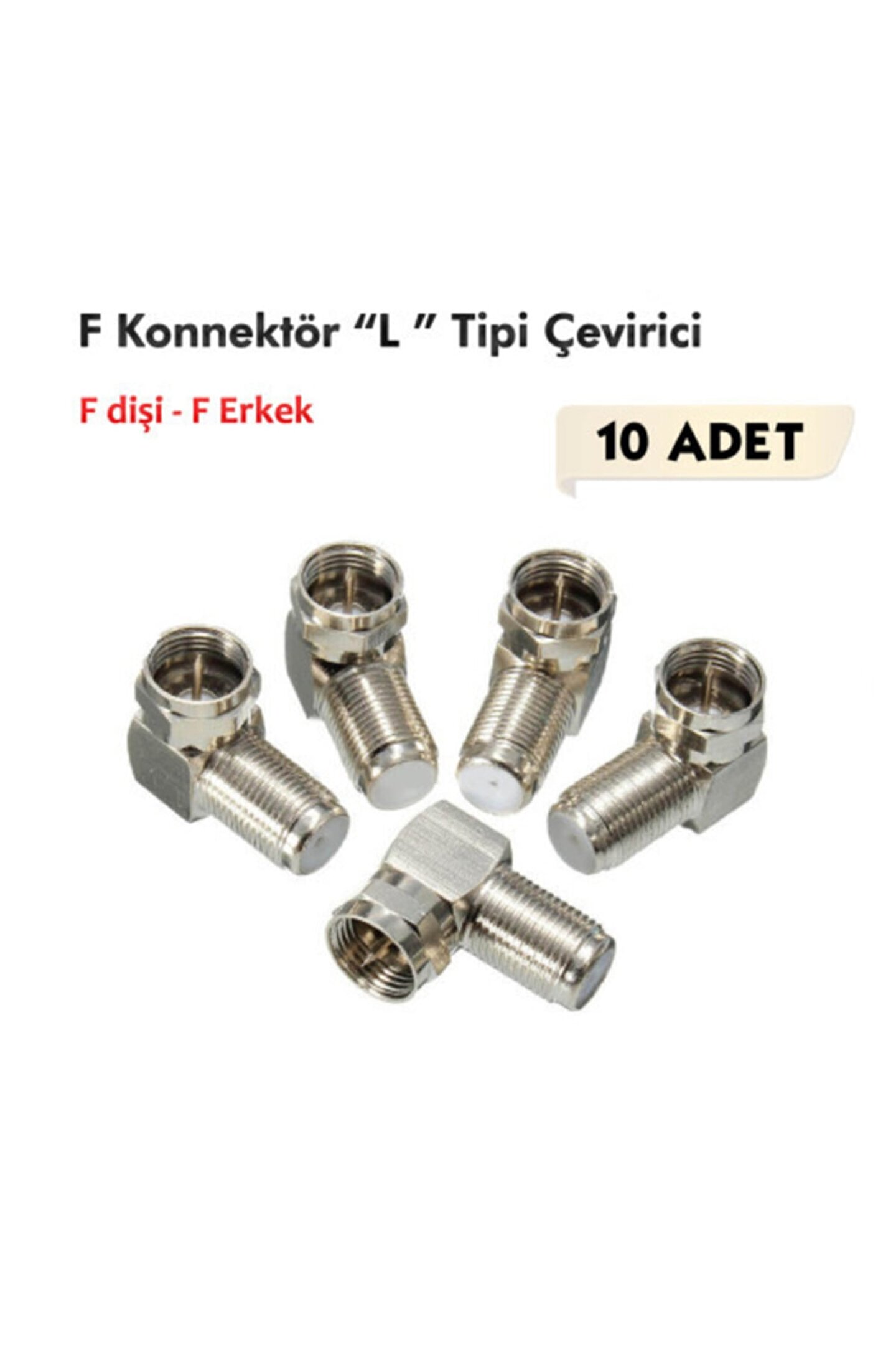 F konnektör l tipi çevirici fiş ( F dişi; F erkek ); 10 adet; l şekli sayesinde kablo kırılmalarını önler; dar alanlarda rahatlıkla kullanabilirsiniz;