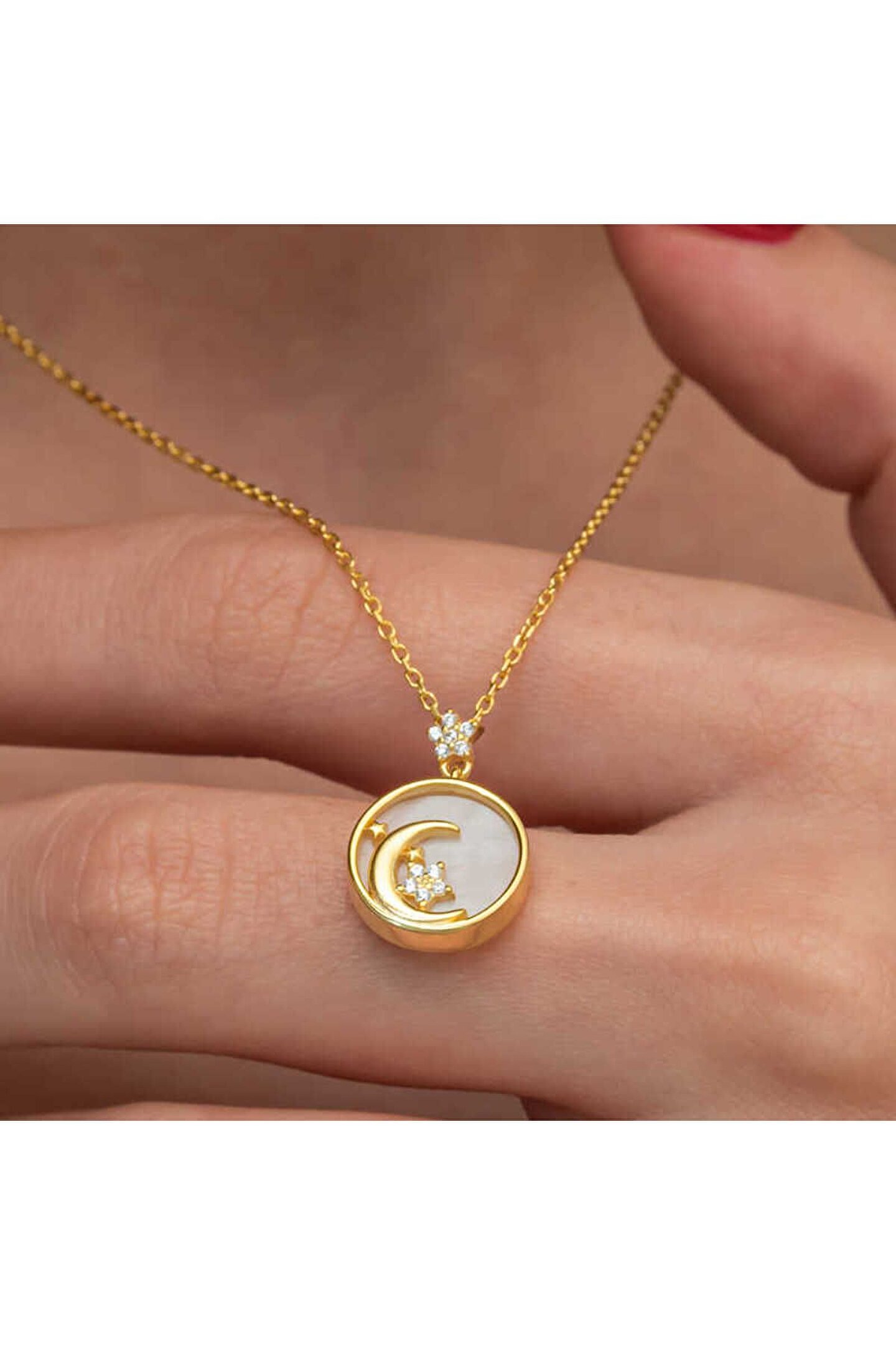 Himarry Gümüş Gold Sedef Taşlı Ay Yıldız Hilal Kadın Kolye