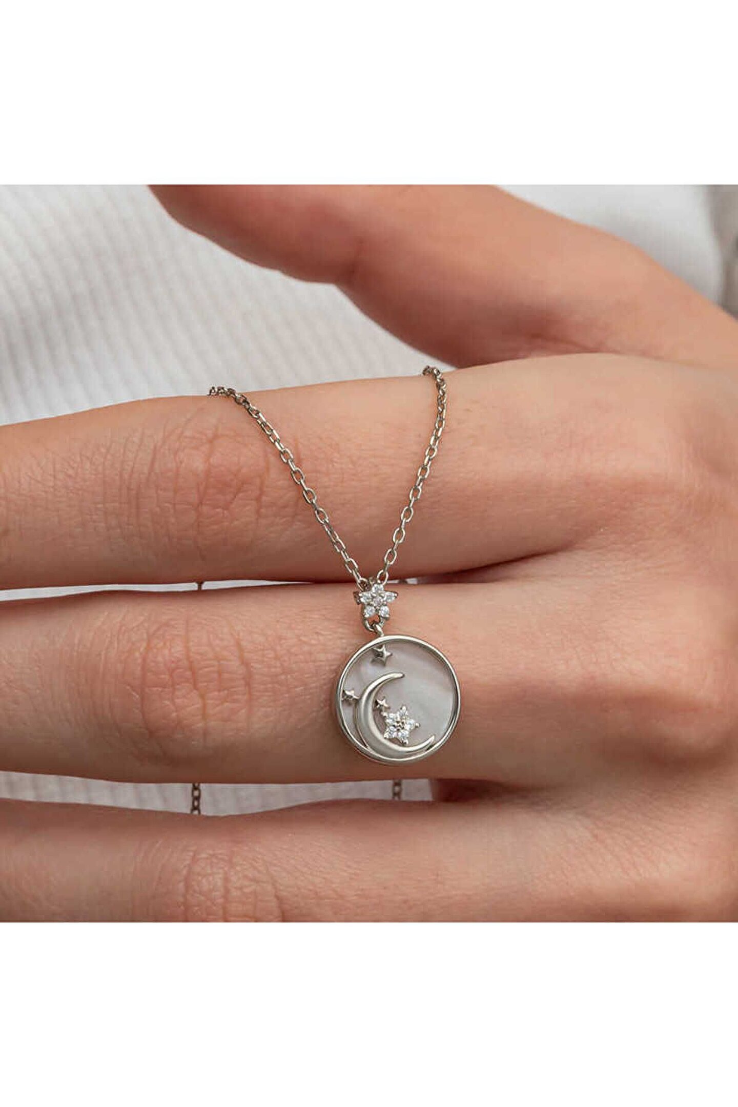 Samur Parti Parti Aksesuar & Kostüm Gümüş Sedef Taşlı Ay Yıldız Hilal Kadın Kolye