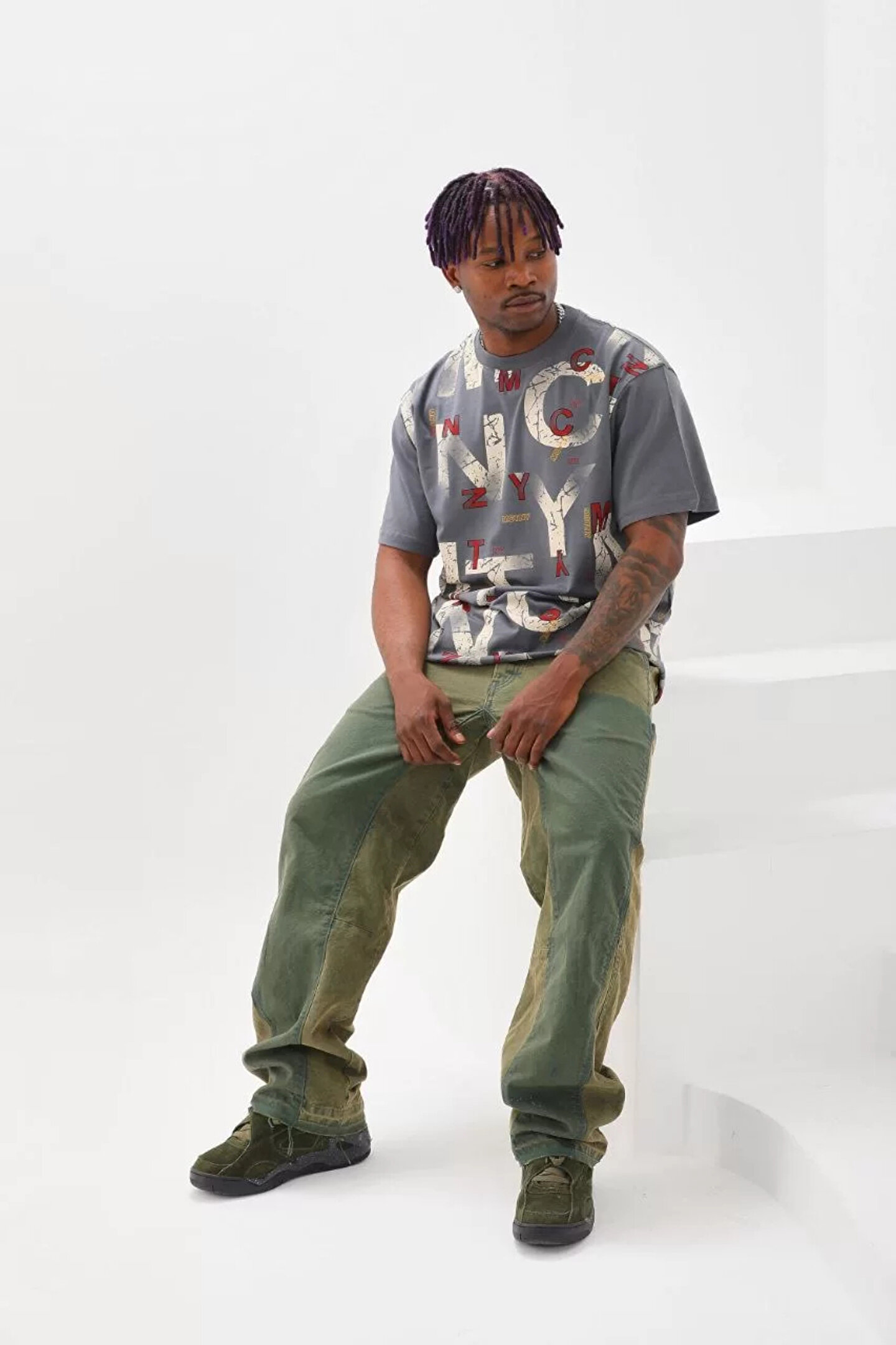 ONZEMU Unisex Baskılı Oversize T-Shirt - Füme