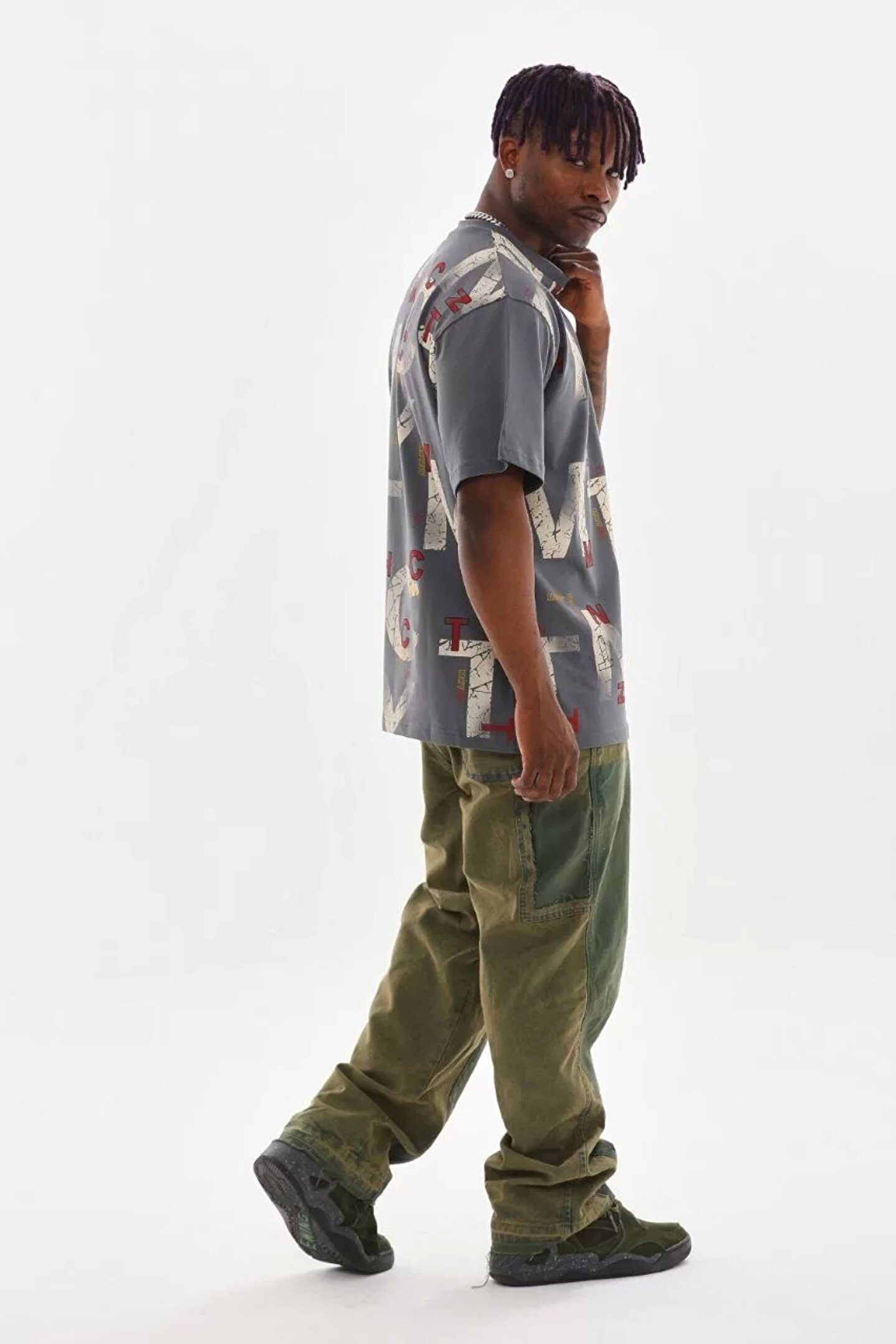Unisex Baskılı Oversize T-Shirt - Füme