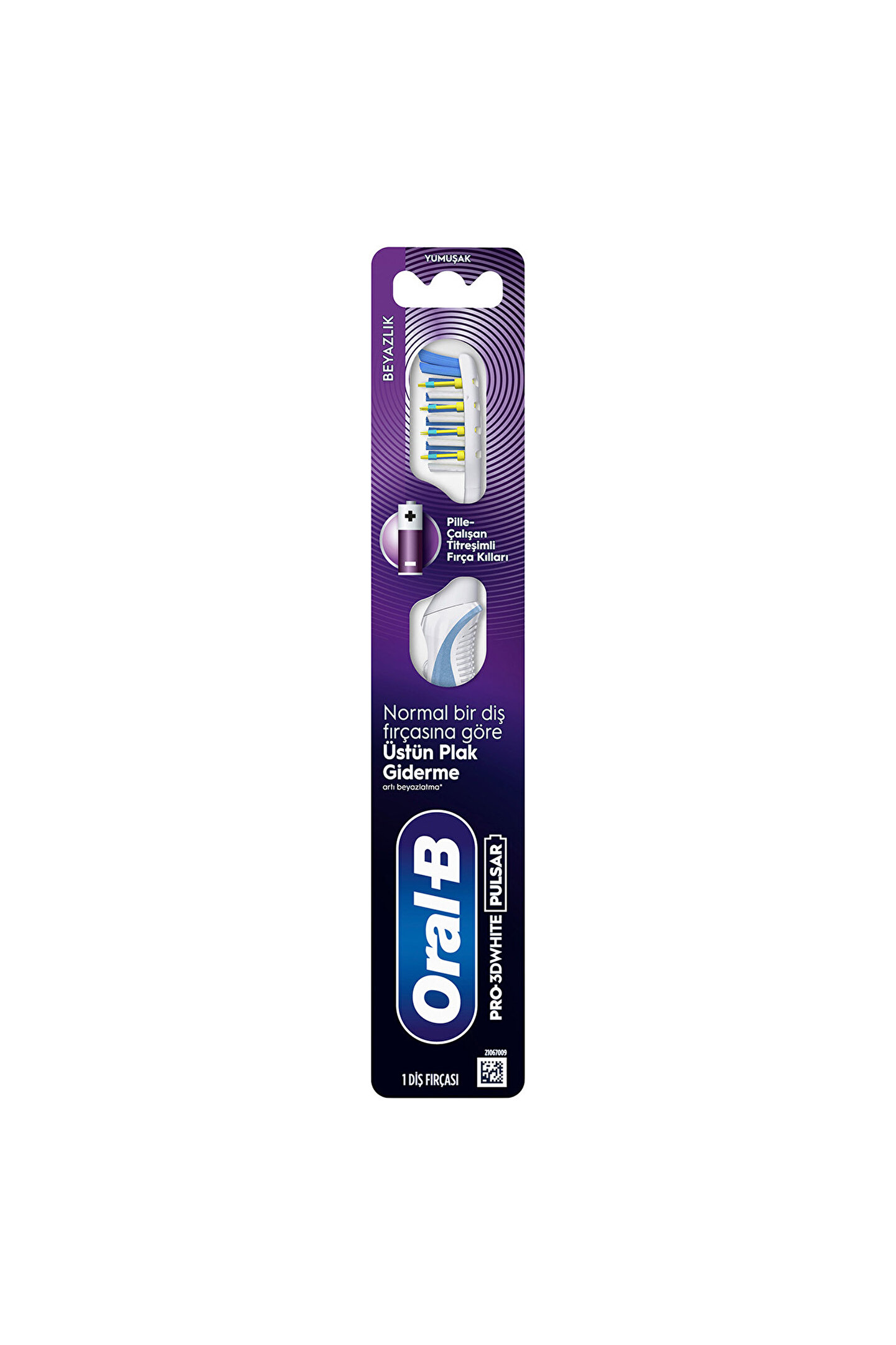 Oral-B Pro-3DWhite Beyazlık Diş Fırçası ile dişlerinize üstün temizlik* sağlayın.; Bu pilli fırça, hassasiyet göz önünde bulundurularak tasarlanmıştır ve azı dişlerinin arkasını temizlemek için güç uçlarından(power tip), parlatma ve beyazlatma için parlatma pedlerinden ve dişlerin benzersiz hatlarına uyum sağlayan esnek kanatlardan yararlanır.; Pilli fırça kılları plağı parçalar ve MicroPulse fırça kılları dişlerin arasına derinlemesine nüfuz ederek temizler ve kirlerden arındırır.; Dünya çapında* diş hekimlerinin en çok kullandığı 1 numaralı marka olan Oral-B ile daha parlak, daha beyaz bir gülümsemeye kavuşun ve ağız sağlığınıza özen gösterin.