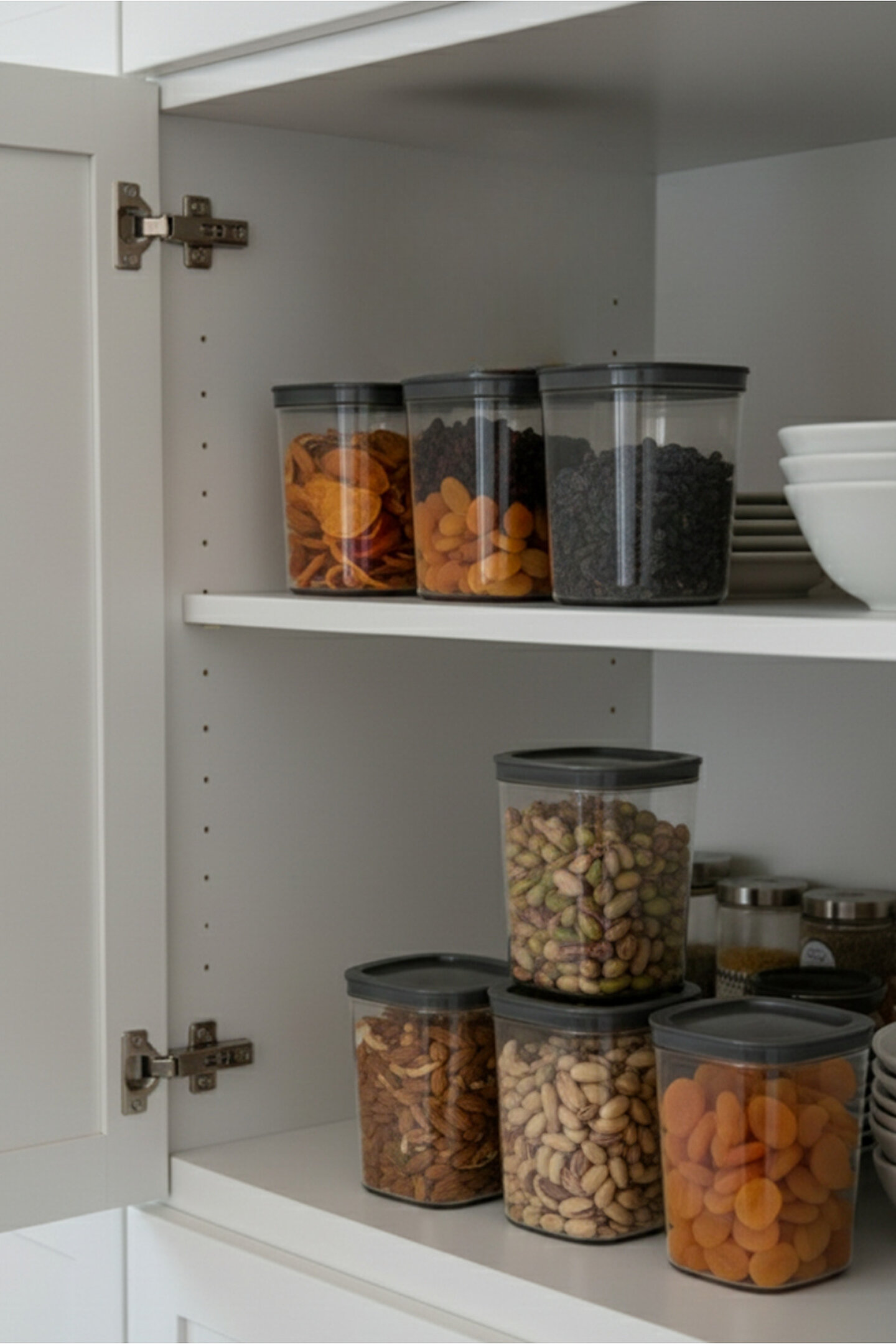 Saklama kapları; hava geçirmez ve sızdırmaz kapak sistemi sayesinde kuruyemiş, bakliyat, kahvaltılık ve atıştırmalıkları uzun süre taze tutar; hijyenik cam yüzeyi sayesinde gıdalarla tamamen güvenli temas sağlar ve koku yapmaz; modern kare-oval formuyla mutfak tezgâhında şık bir görüntü oluşturur; düzenli depolama için dar alanlara dahi rahatlıkla sığan ergonomik tasarıma sahiptir; saydam cam gövde içindeki ürünleri kolayca görmenizi sağlayarak kullanım kolaylığı sunar; kapak kısmı sağlam oturan özel contalı yapısı ile nemi engeller ve ürünlerin raf ömrünü uzatır; ceviz, fındık, badem, kaju, makarna, bakliyat, kahve çekirdeği, kuru meyve ve granola gibi tüm kuru gıdaların saklanmasına uygundur; ofis, mutfak, kiler ve restoranlarda düzen sağlamak için ideal depolama çözümüdür; ısıya, çizilmeye ve darbelere karşı dayanıklı cam yüzeyi uzun ömürlü kullanım sunar; minimal ve modern tasarımı ile her mutfak dekorasyonuna uyum sağlar; tezgâh üstü kullanımda estetik bir görünüm oluştururken dolap içlerinde de maksimum düzen sağlar; günlük kullanım için pratik ve kolay temizlenebilir yapısı ile kullanıcı dostudur; sağlıklı yaşamı destekleyen cam malzemesi plastik kokusu olmadan doğal saklama imkânı sunar; evinizde hem estetik hem fonksiyonel bir düzen yaratmak isteyenler için ideal bir seçimdir.; Ölçüsü 15,5x11,5 cm dir Elde yıkayınız bulaşık makinasına uygun değildir.; 1,4 L