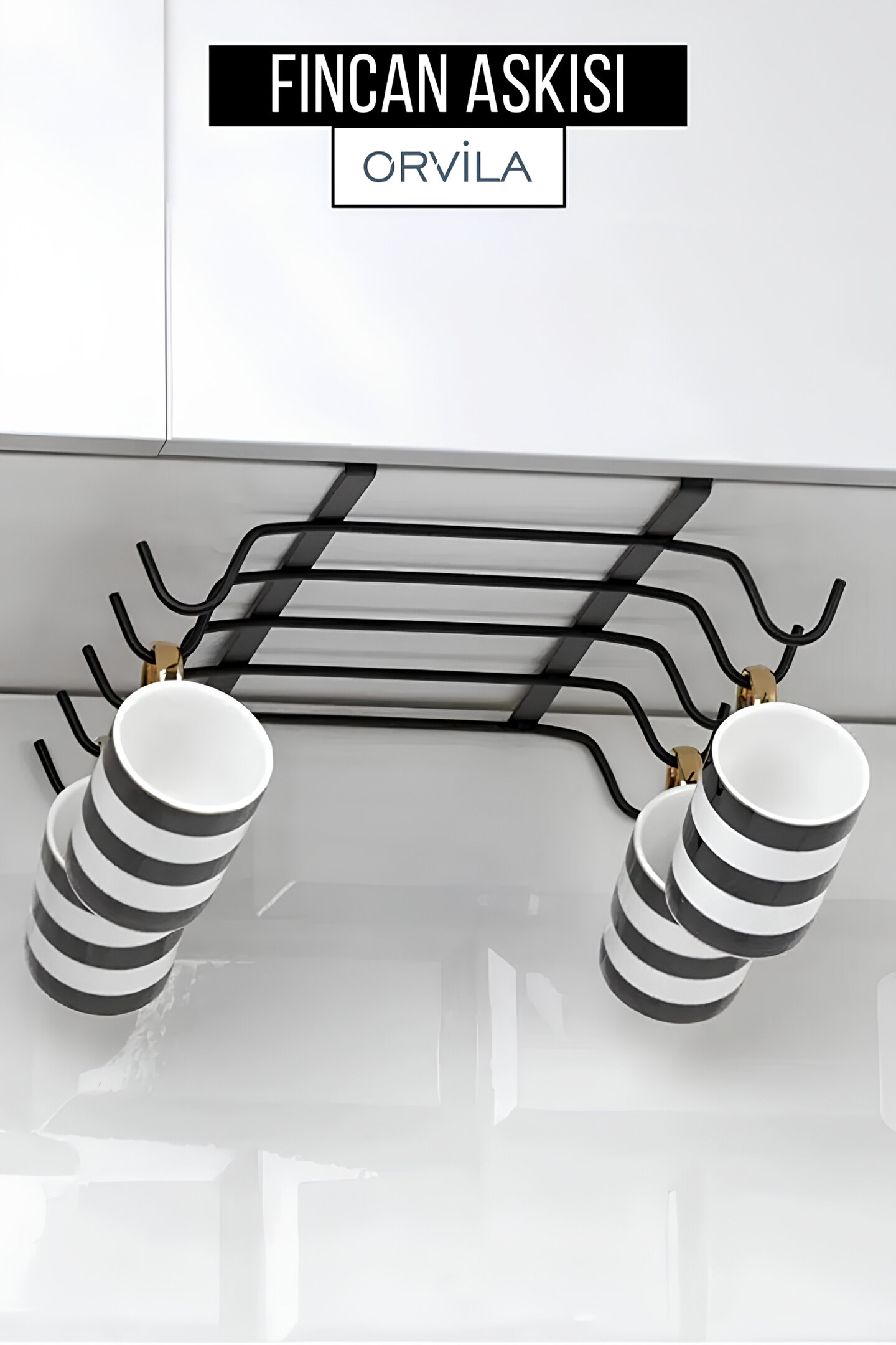Orvila Raf Altı Asılabilir 10 Kancalı Fincan Ve Kupa Bardak Düzenleyici Askılığı - Siyah