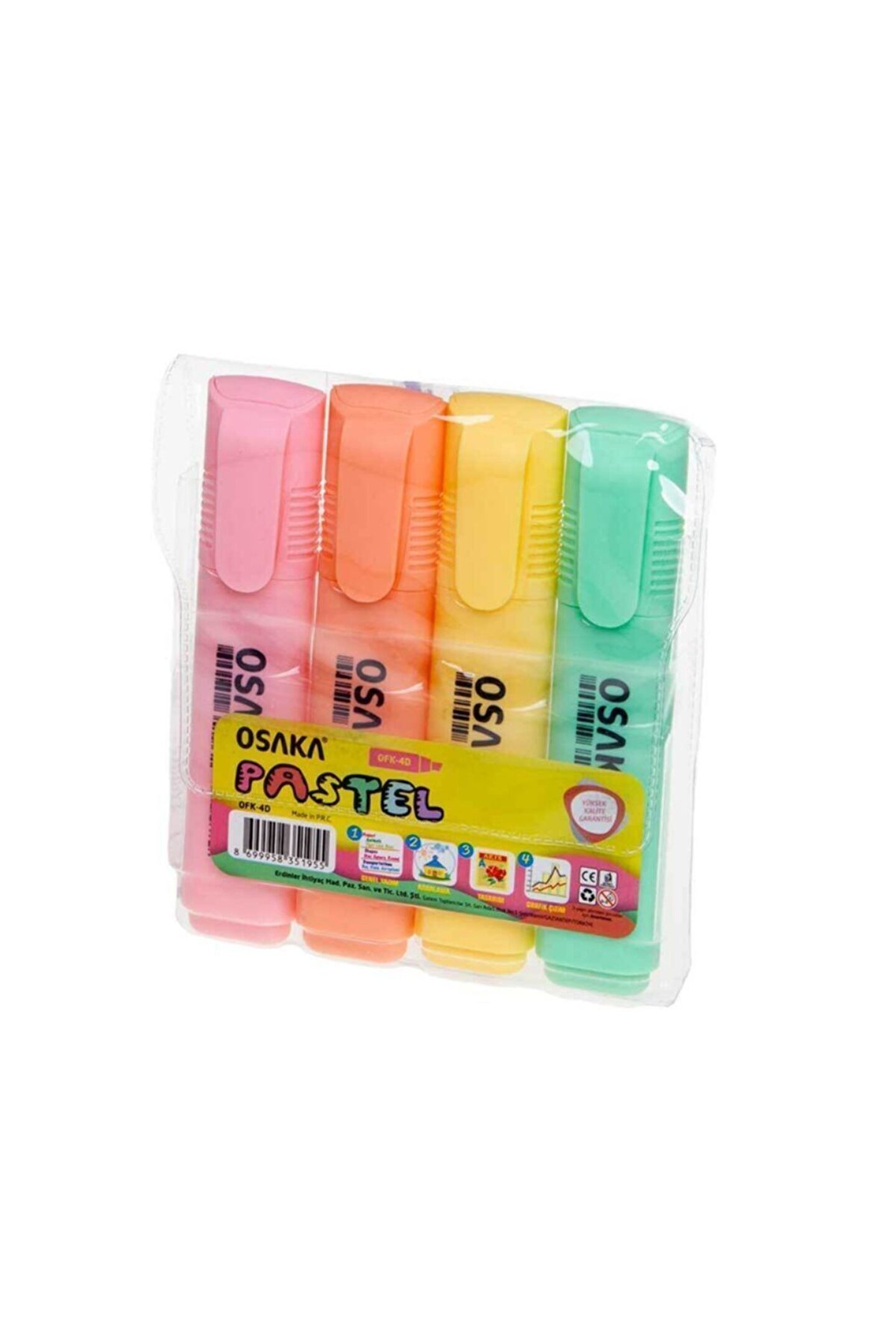 4 Renk Fosforlu Kalem Pastel Renkler