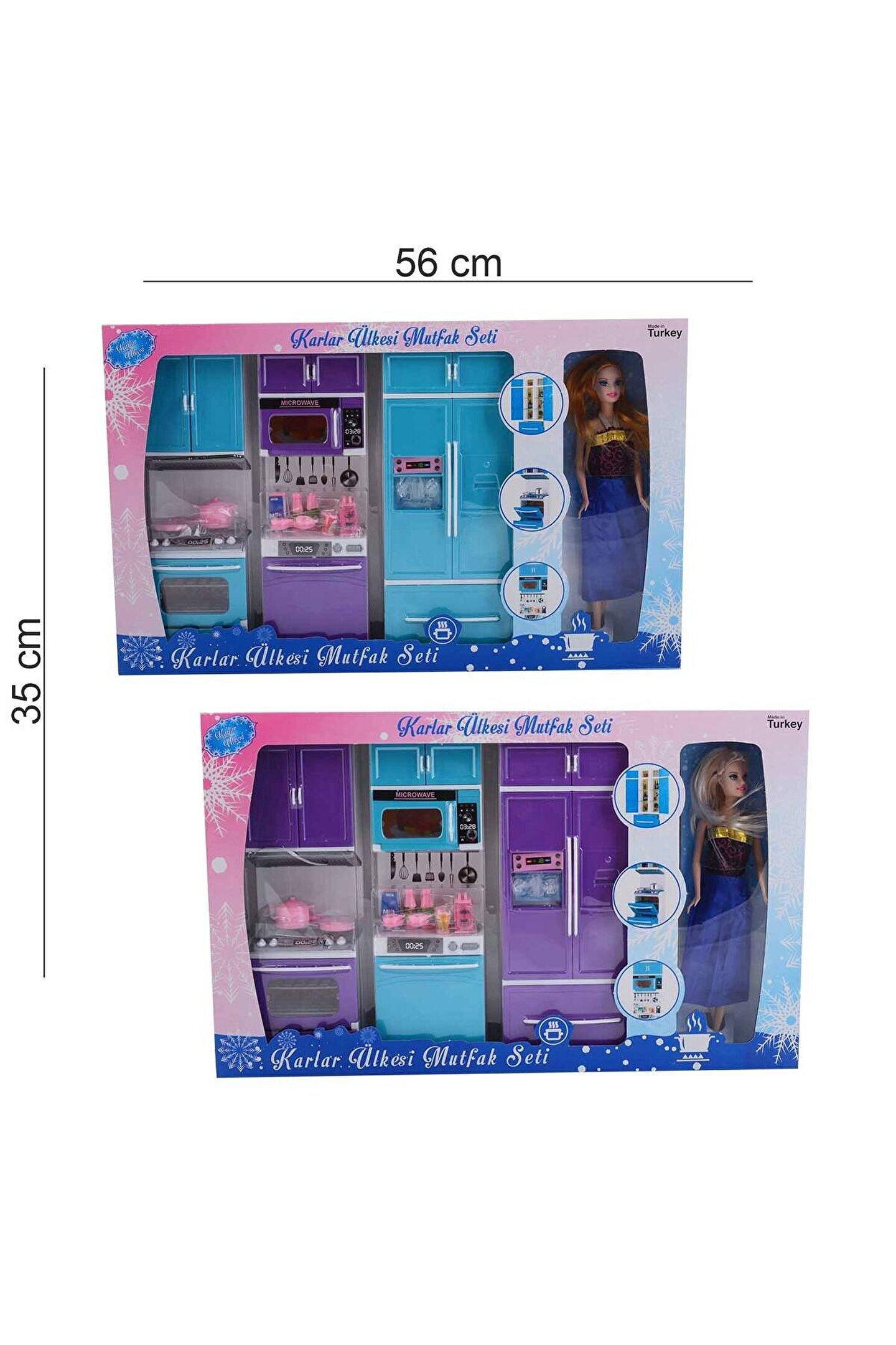 SÜRPRİZ MİNİK HEDİYESİ İLE GÖNDERİLMEKTEDİR.; Karlar ülkesi bebek ve 3'lü mutfak seti Bu oyuncak seti ile çocuklar eğlenceli vakit geçirecekler ve hayal dünyalarını geliştirecekler.; Çocuklar da artık anneleri gibi kendi mutfak setlerine sahipler.; En güzel yemeklerinizi bu mutfakta yapacaksınız.; Bebek yaklaşık 29 cm boyundadır.; Ürünler dönemsel olarak renk farklılığı gösterebilmektedir.; Yaş grubu : 3+ yaş Barkodu: 8893330023359 Item no : Oyd-02335 Kutu ölçüleri : 56,5 x 35 x 8,5 cm.; Desi değeri: 6