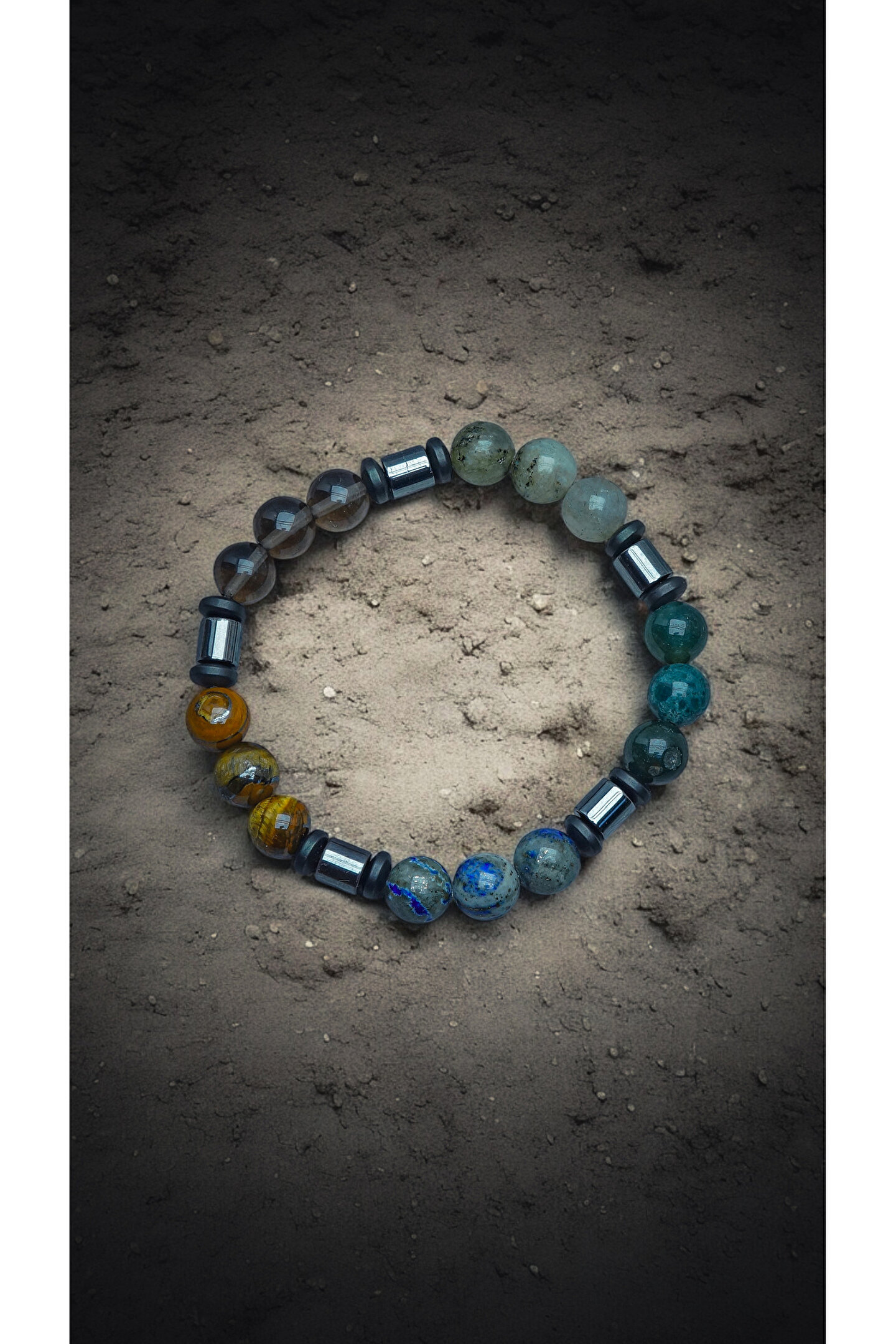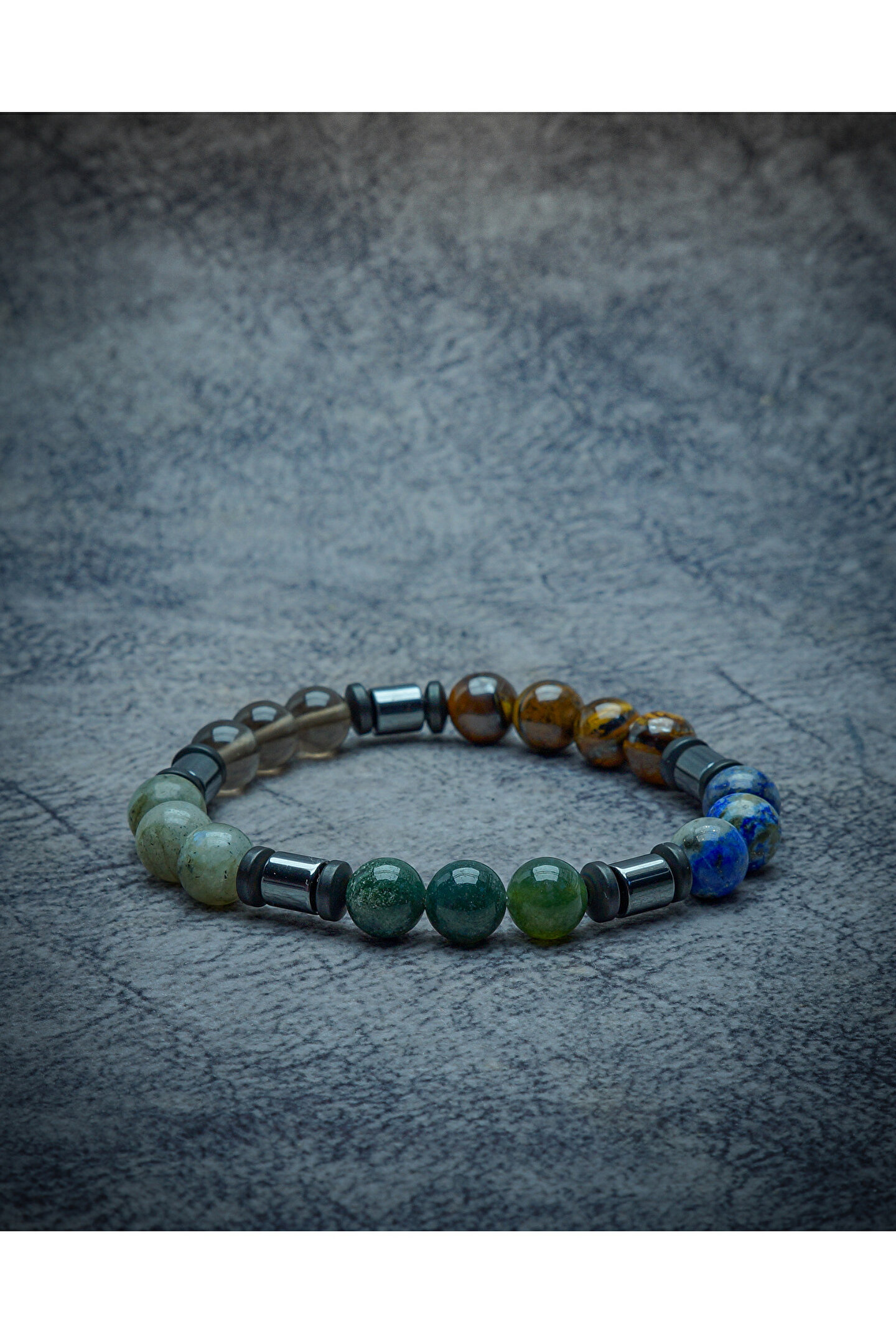 Öfkeni sakinliğe, gücünü dengeye dönüştür.; Bu özel erkek bilekliği, uyum ve öfke kontrolü sorunları yaşayanlar için güçlü ve dengeli bir enerji sunar.; Lapis Lazuli, içsel huzuru artırarak iletişimi güçlendirirken, Kaplan Gözü kişiye özgüven ve kararlılık kazandırır.; Dumanlı Kuvars, olumsuz enerjileri temizleyerek zihni sakinleştirir, Labradorit duygusal dengeyi destekleyerek ani tepkileri yatıştırır.; Yosun Akik, doğanın huzur verici enerjisini taşıyarak sabrı ve uyumu teşvik eder, Hematit ise negatif enerjiyi uzaklaştırarak güçlü bir topraklama etkisi sağlar.; Bu bileklik, hem enerjisel dengeyi sağlamak hem de şık bir aksesuar olarak günlük hayata uyum sağlamak isteyen erkekler için mükemmel bir seçimdir.; Bilek çevrenizi ölçmek için bir mezureyi bileğinizin en geniş yerine, çok sıkmadan ancak tam oturacak şekilde dolayın.; Mezurenin başlangıç noktası ile birleştiği yeri okuyarak ölçünüzü belirleyin.; Eğer mezureniz yoksa, bir ip veya şerit kullanarak bileğinizi ölçüp, ardından bir cetvelle uzunluğunu belirleyebilirsiniz.; Doğal taşlar, yüzyıllardır farklı kültürlerde enerjileri ve faydalı etkileriyle tanınmış ve kullanılmıştır.; Ancak bu etkiler kişisel inanç, deneyim ve algıya bağlı olarak değişiklik gösterebilir.; Bu taşların doğal güzellikleri ve eşsiz enerjileri, günlük yaşamınıza estetik ve anlam katabilir